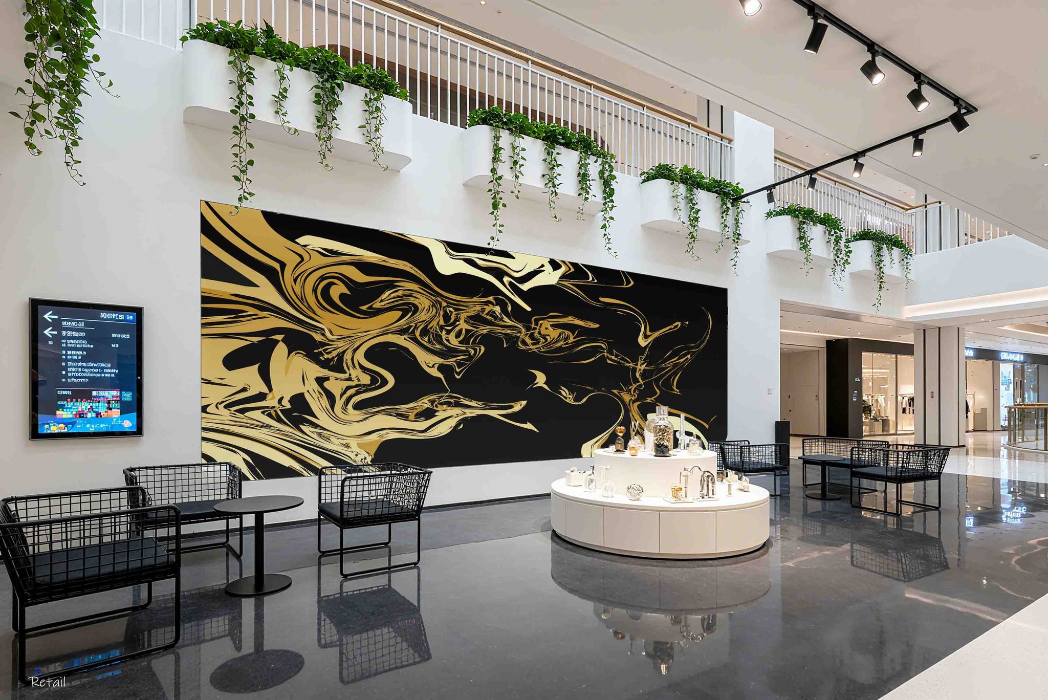 3D Retail Shop Store Market Trade Marble Gold Black Wall Mural Wallpaper 21