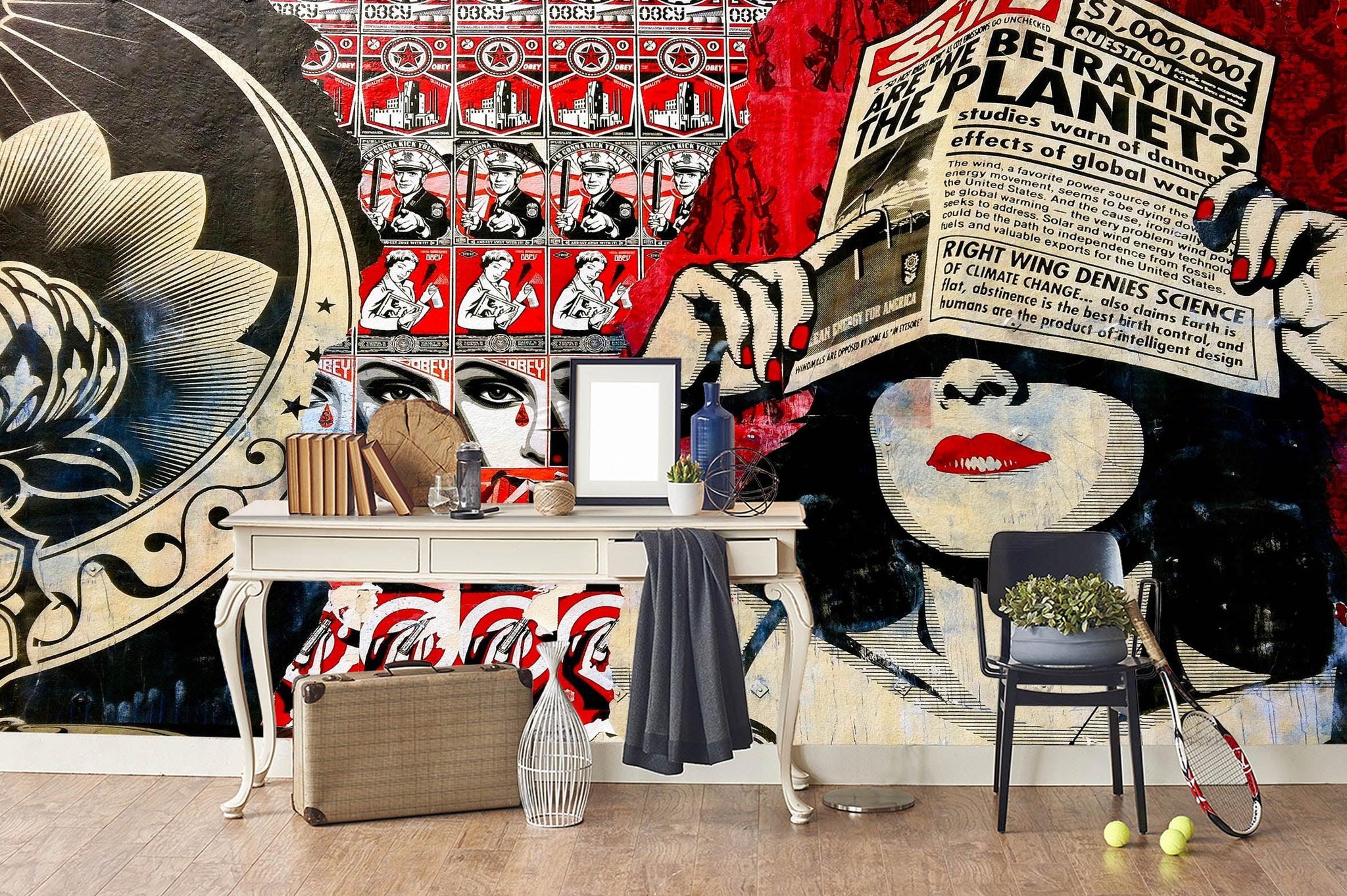 3D Retro Newspaper Lady Wall Mural Wallpaper B94