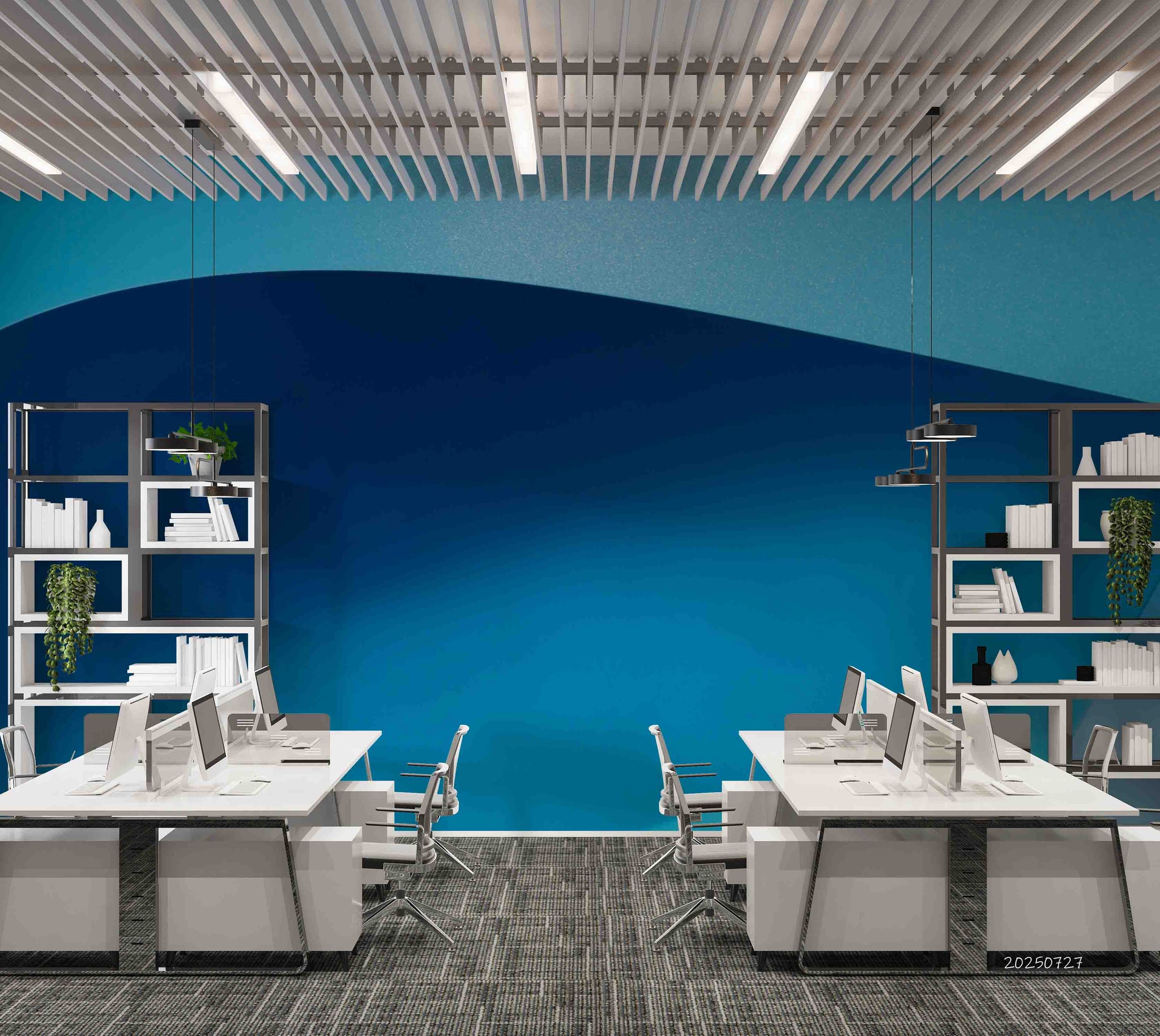 3D Office Business Commerce Blue Geometric Modern Wall Mural Wallpaper 27