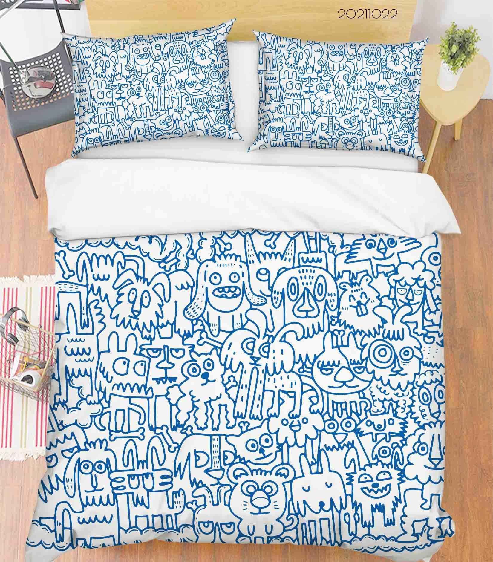 3D Abstract Blue Dog Graffiti Quilt Cover Set Bedding Set Duvet Cover Pillowcases 36