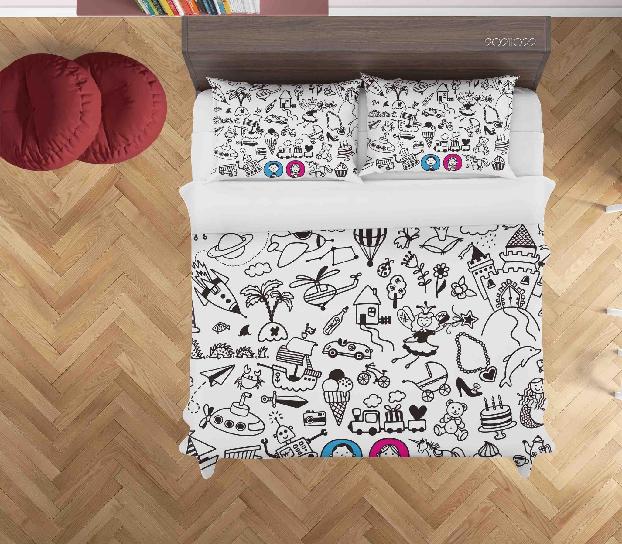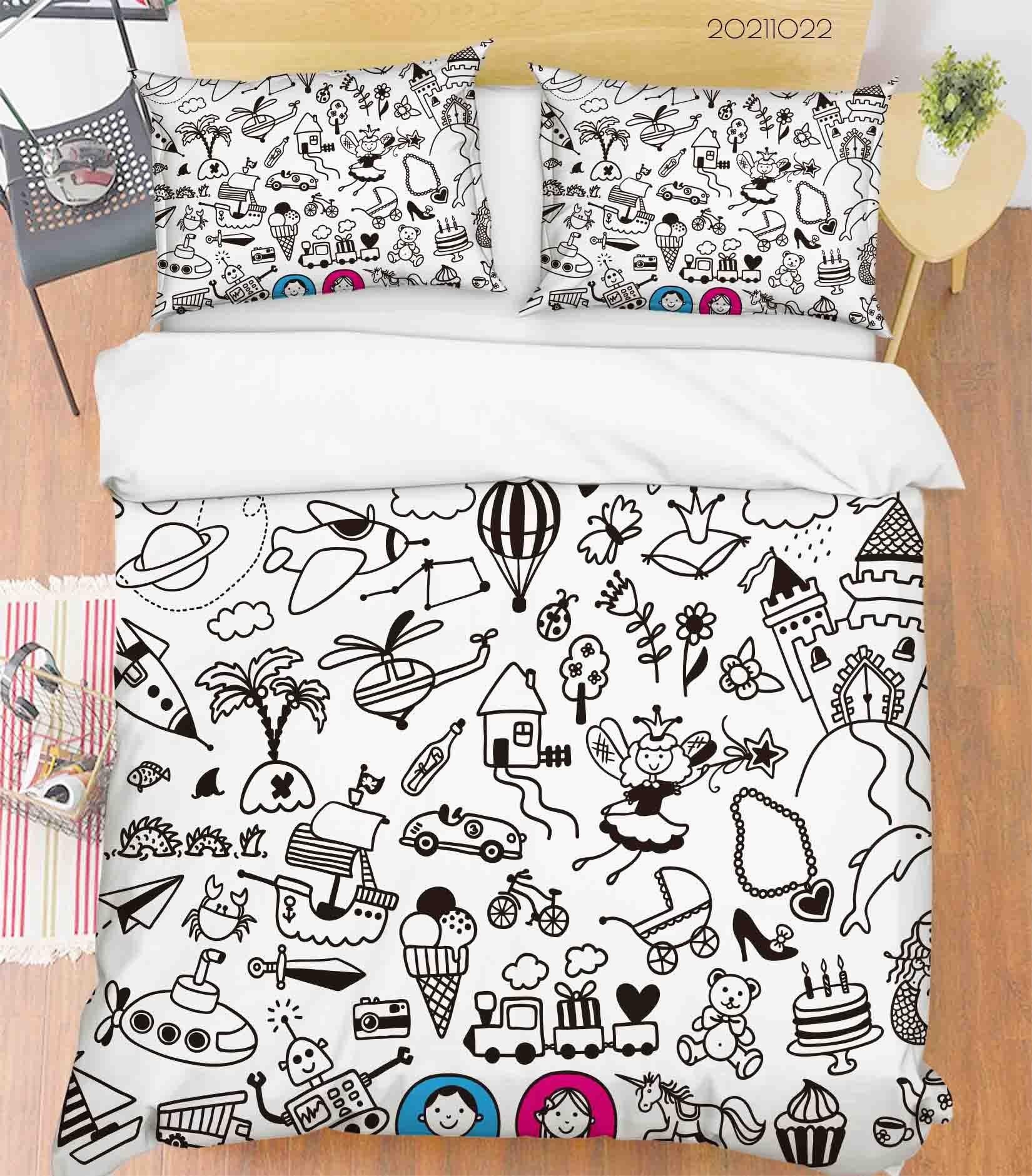 3D Abstract Cartoon Life Graffiti Quilt Cover Set Bedding Set Duvet Cover Pillowcases 90