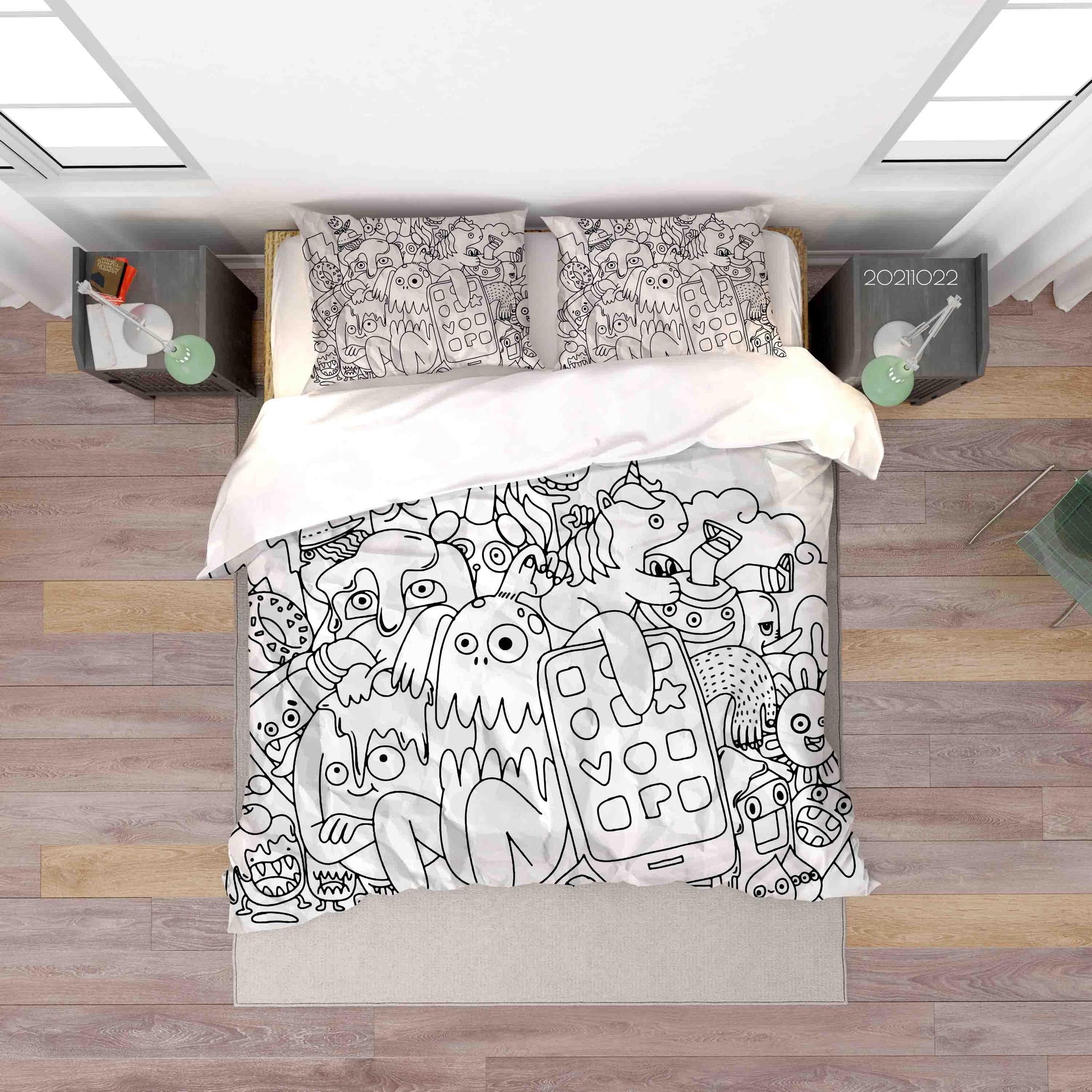 3D Abstract Gray Monster Graffiti Quilt Cover Set Bedding Set Duvet Cover Pillowcases 20