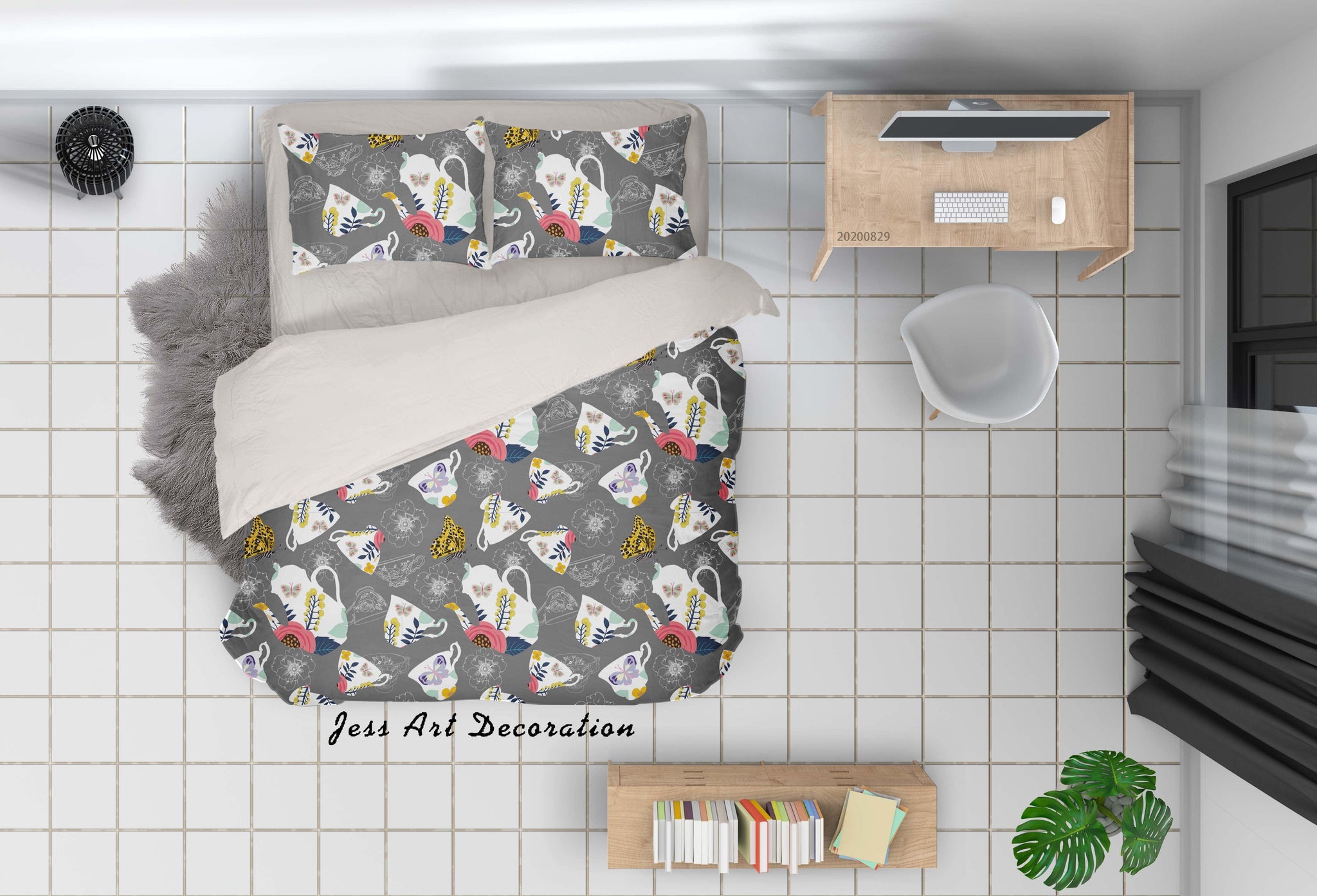 3D Abstract Hand Draw Cartoon Teapot Teacup Pattern Quilt Cover Set Bedding Set Duvet Cover Pillowcases WJ 3585