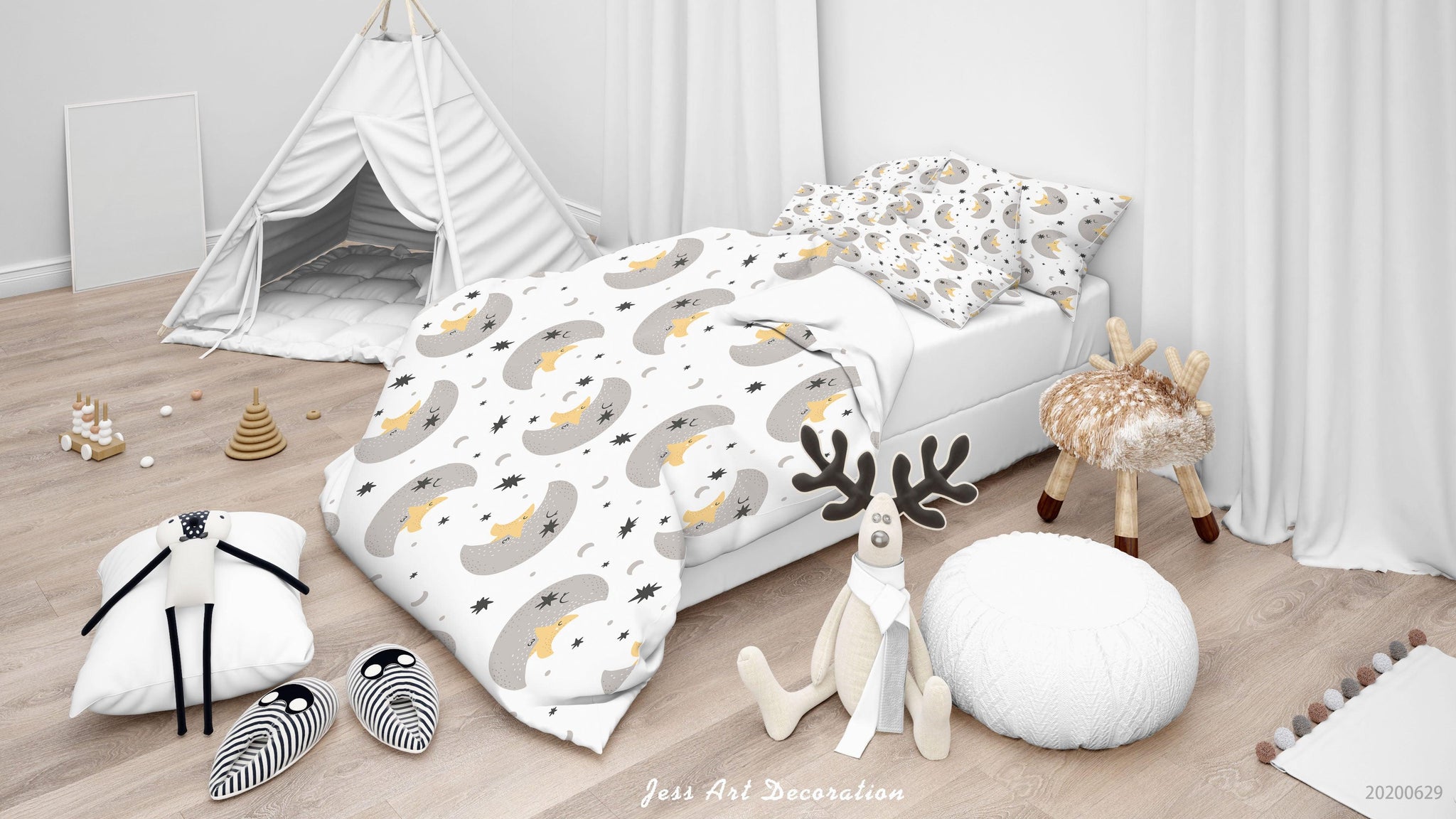 3D White Moon Star Quilt Cover Set Bedding Set Duvet Cover Pillowcases SF02