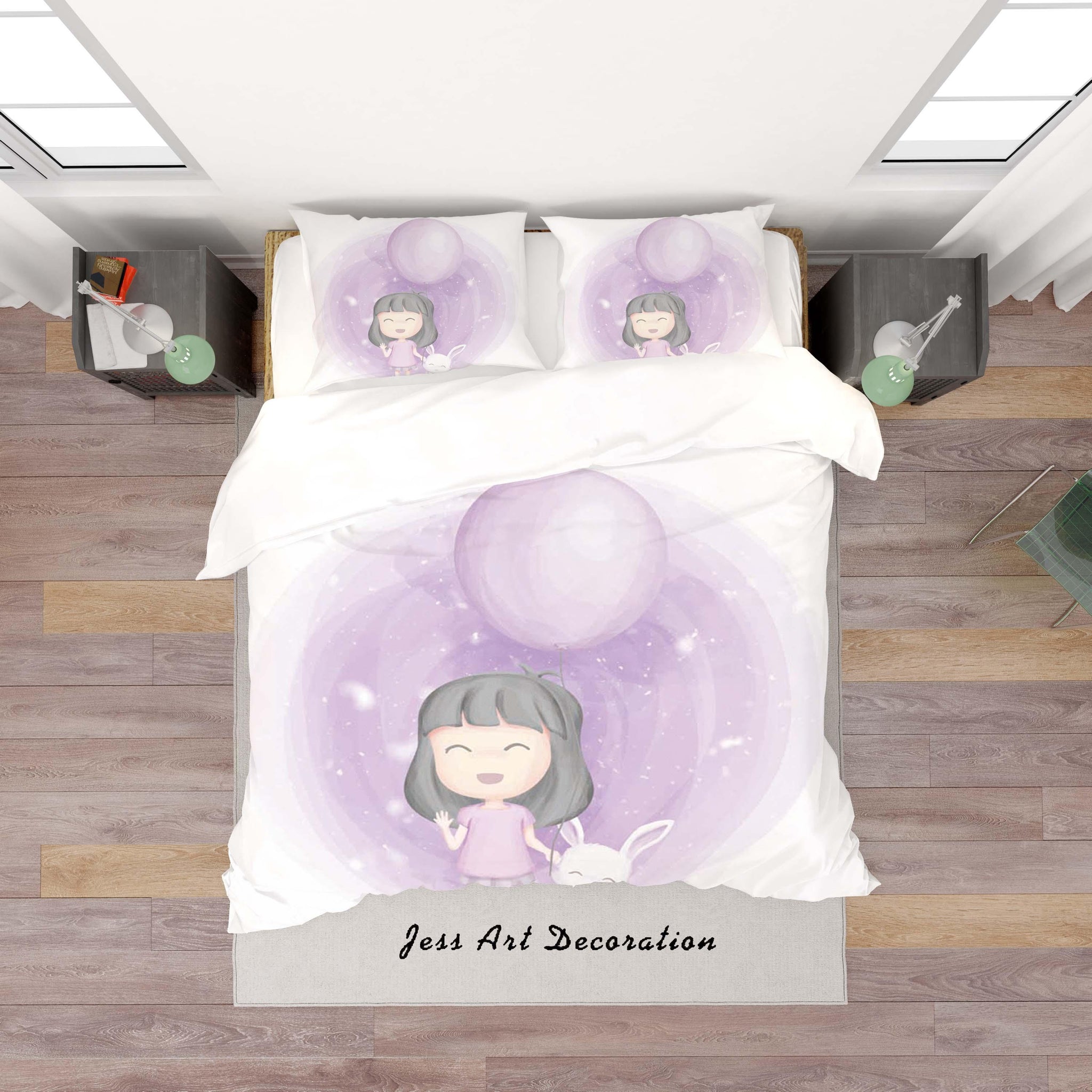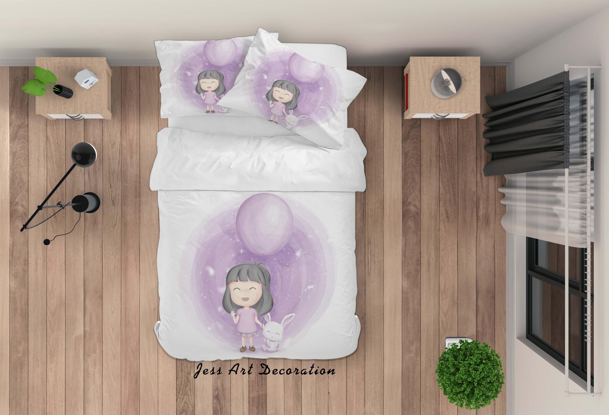 3D White Purple Girl Rabbit Balloon Quilt Cover Set Bedding Set Duvet Cover Pillowcases SF85