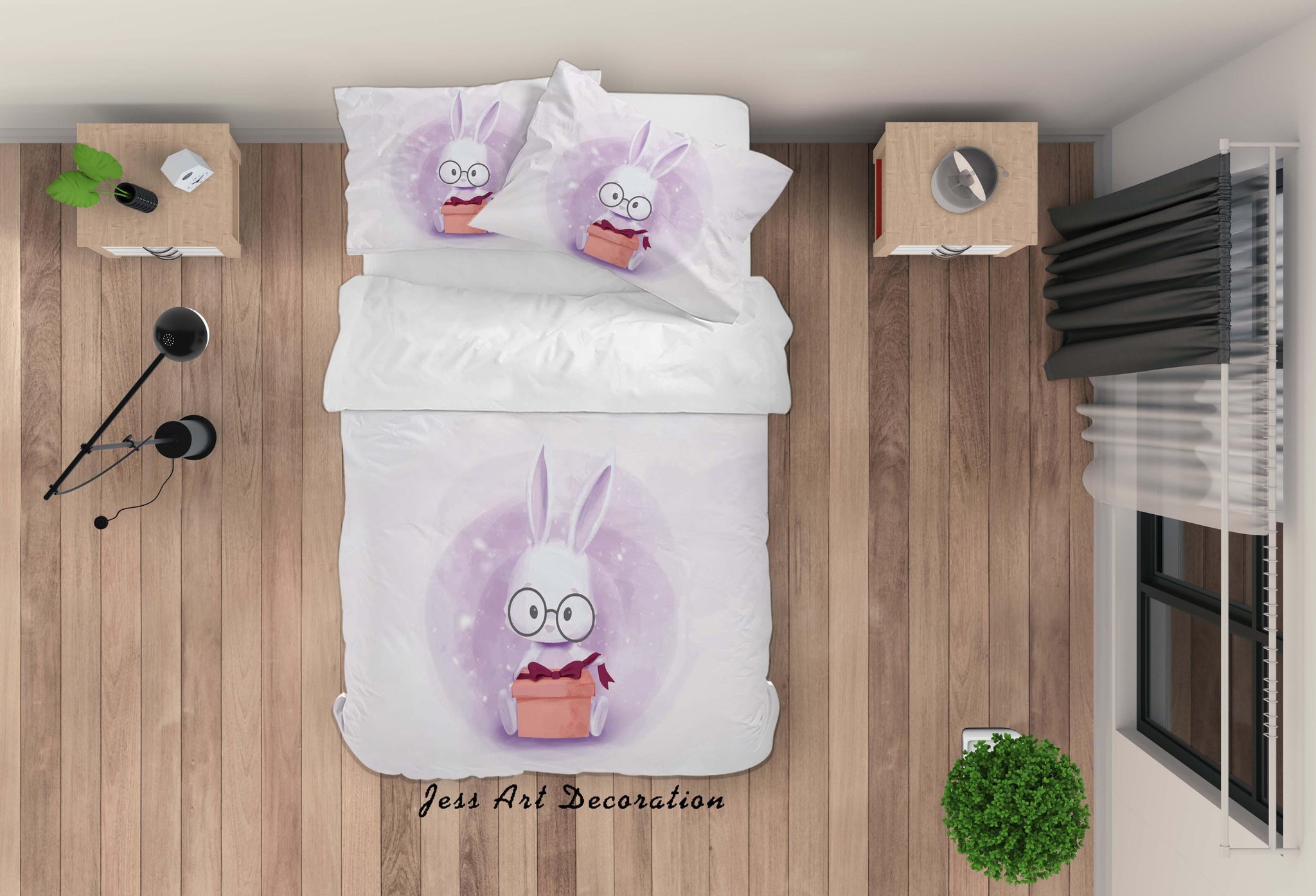 3D White Purple Rabbit Gift Quilt Cover Set Bedding Set Duvet Cover Pillowcases SF47