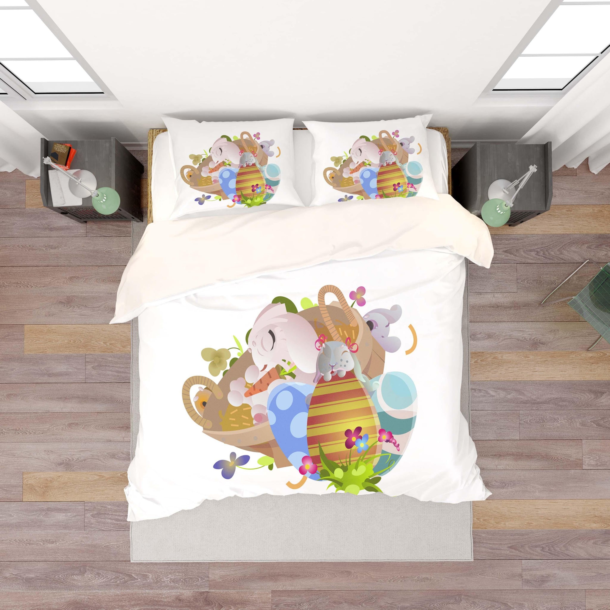 3D White Rabbit Floral Basket Eggs Quilt Cover Set Bedding Set Duvet Cover Pillowcases SF33