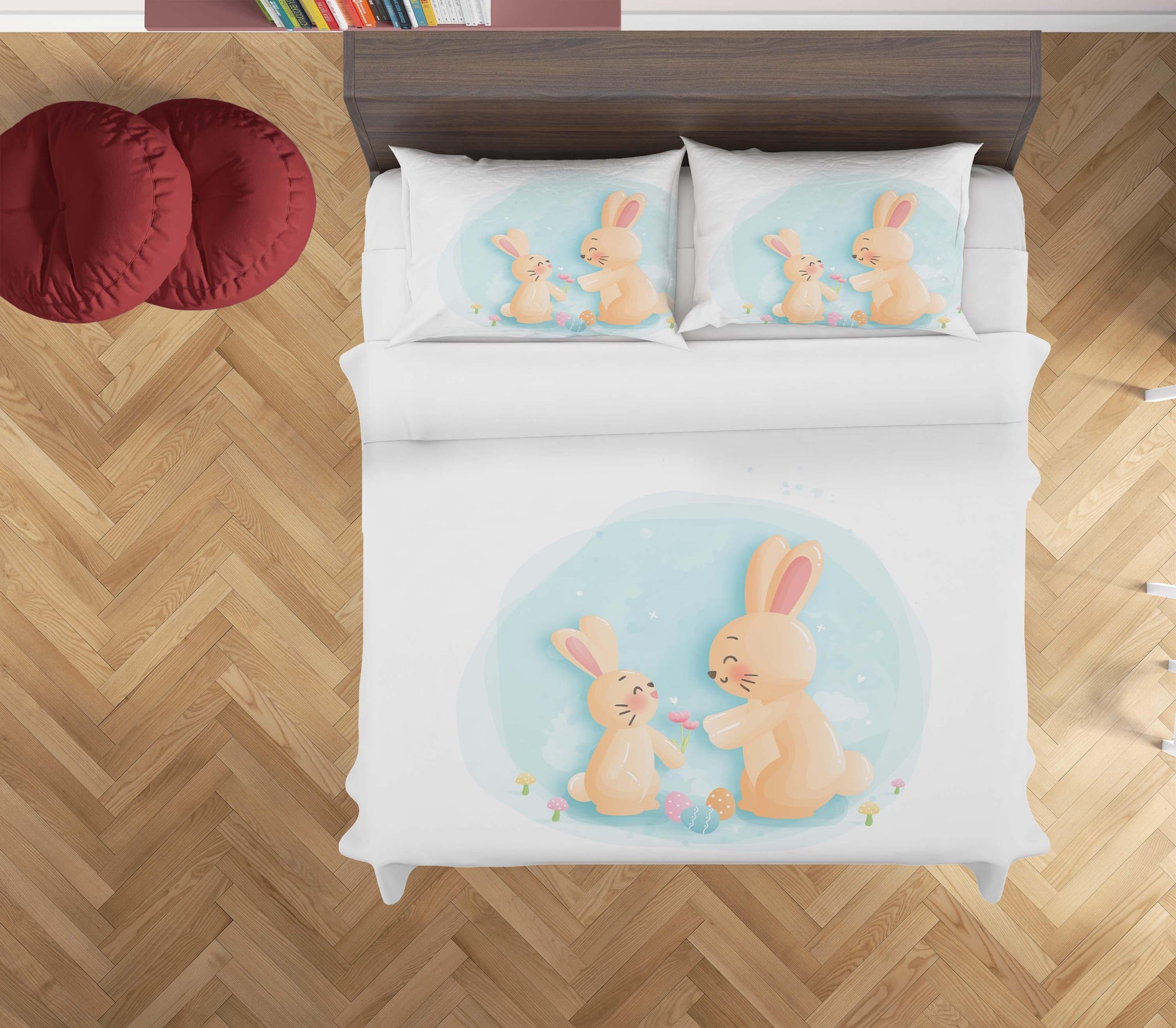 3D White Rabbit Floral Mushroom Quilt Cover Set Bedding Set Duvet Cover Pillowcases SF38