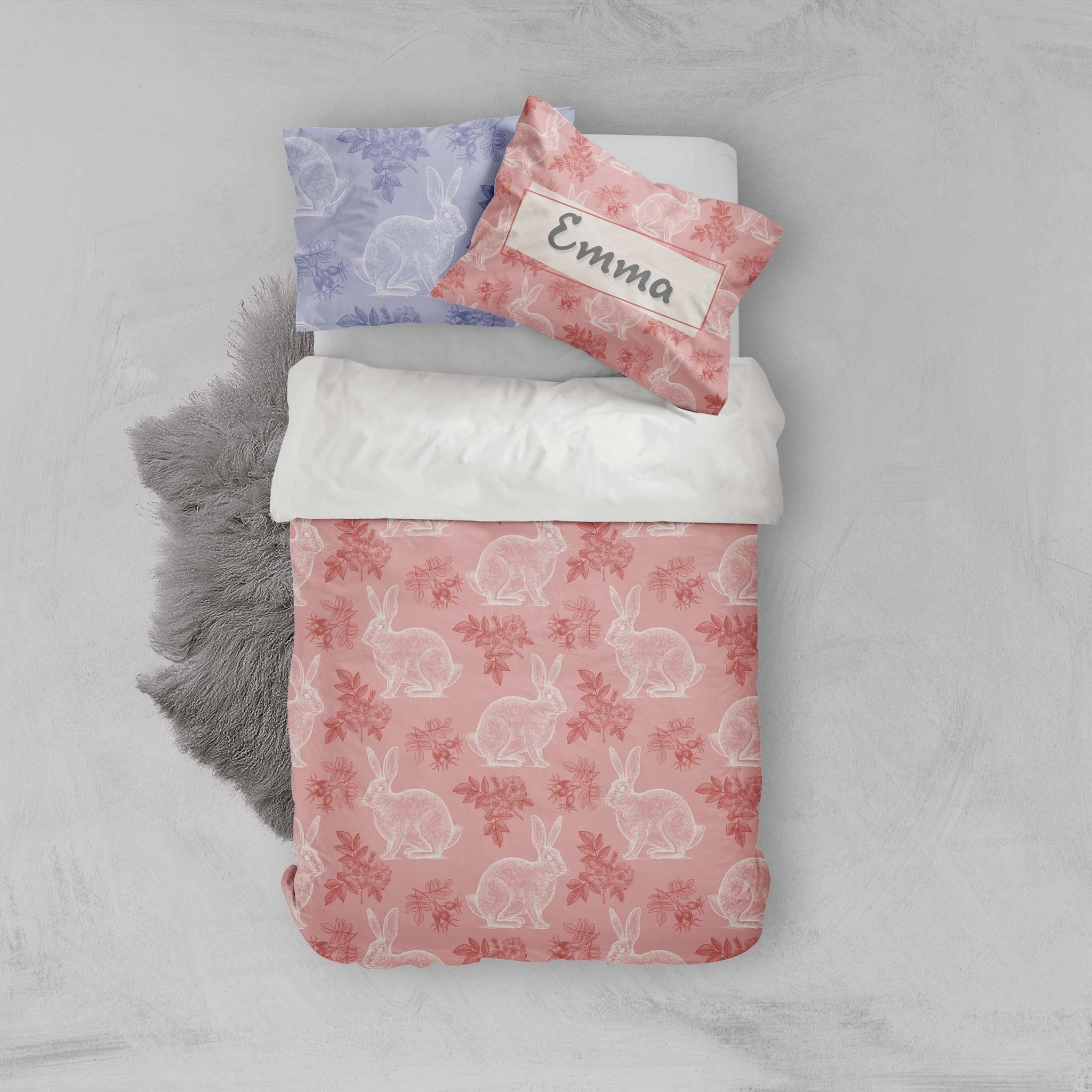 3D White Rabbit Pink Quilt Cover Set Bedding Set Pillowcases 03