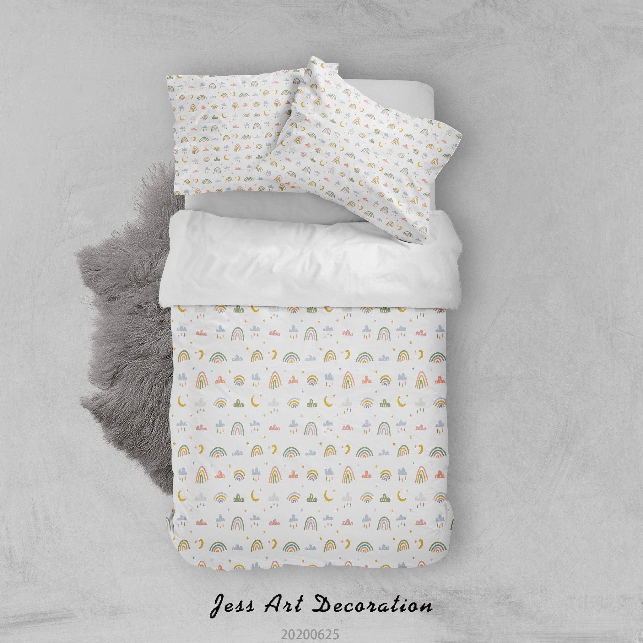 3D White Rainbow Moon Star Clouds Quilt Cover Set Bedding Set Duvet Cover Pillowcases SF42