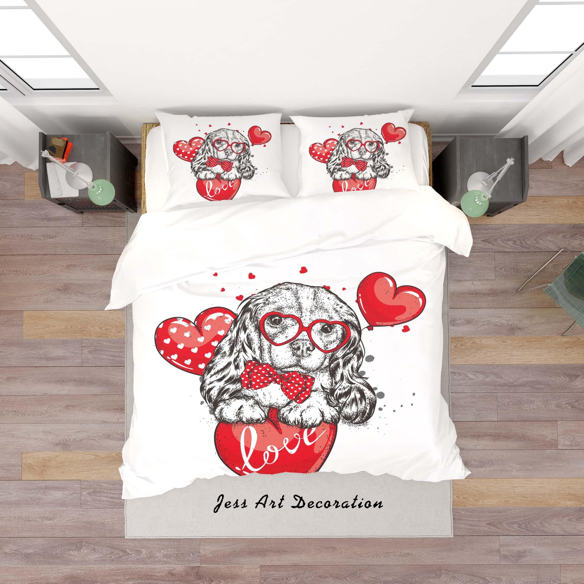 3D White Red Dog Balloon Quilt Cover Set Bedding Set Duvet Cover Pillowcases SF160