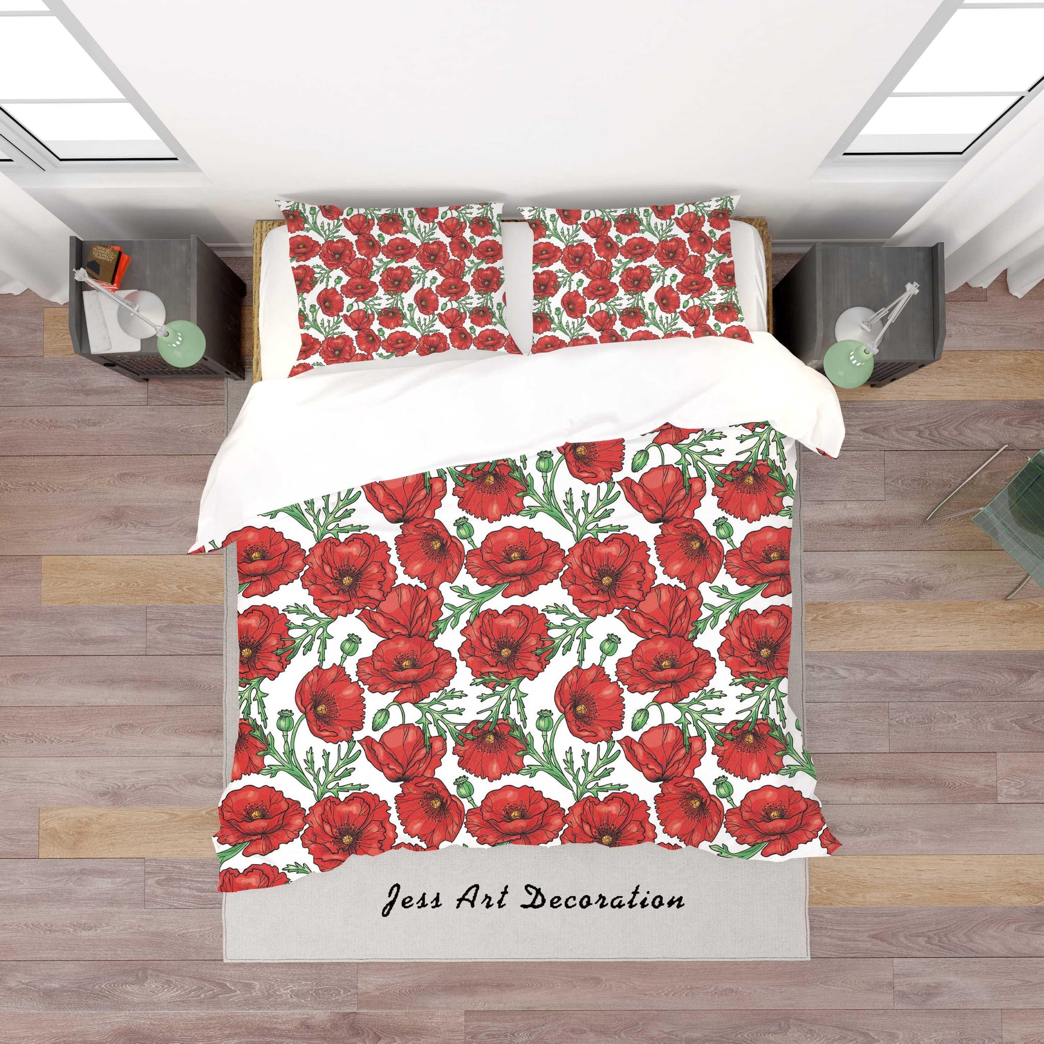 3D White Red Floral Quilt Cover Set Bedding Set Duvet Cover Pillowcases SF117