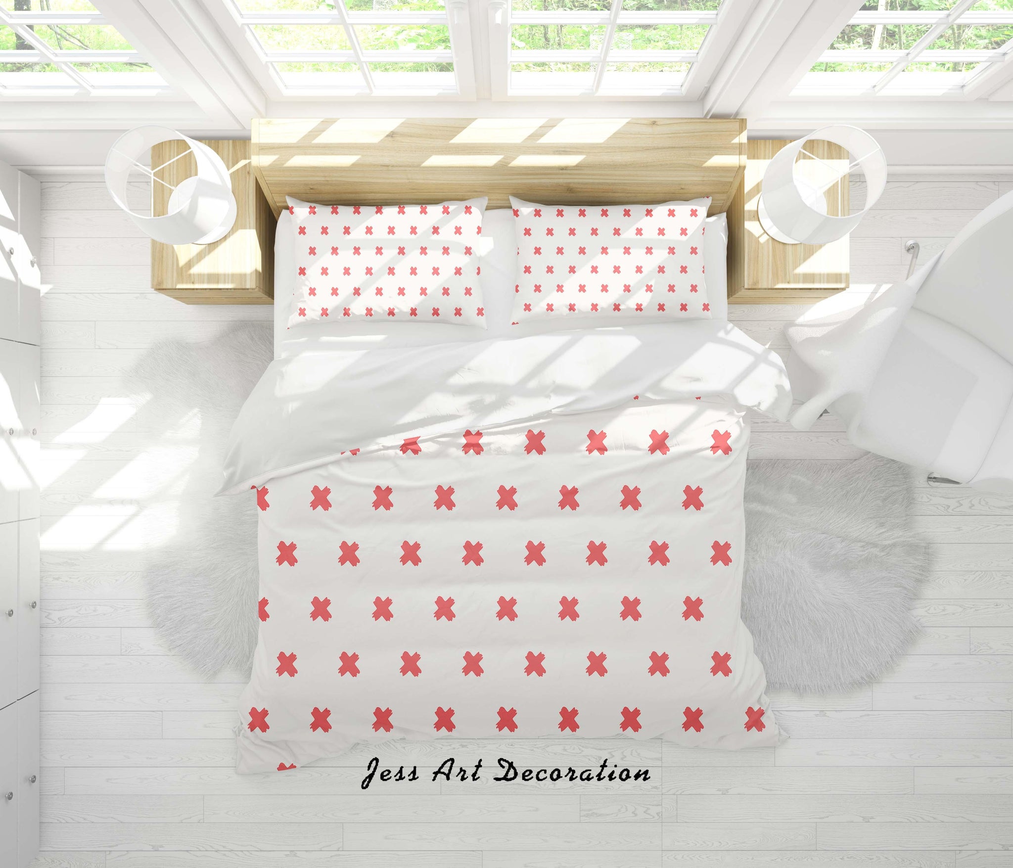 3D White Red Multiplication Sign Quilt Cover Set Bedding Set Duvet Cover Pillowcases SF36