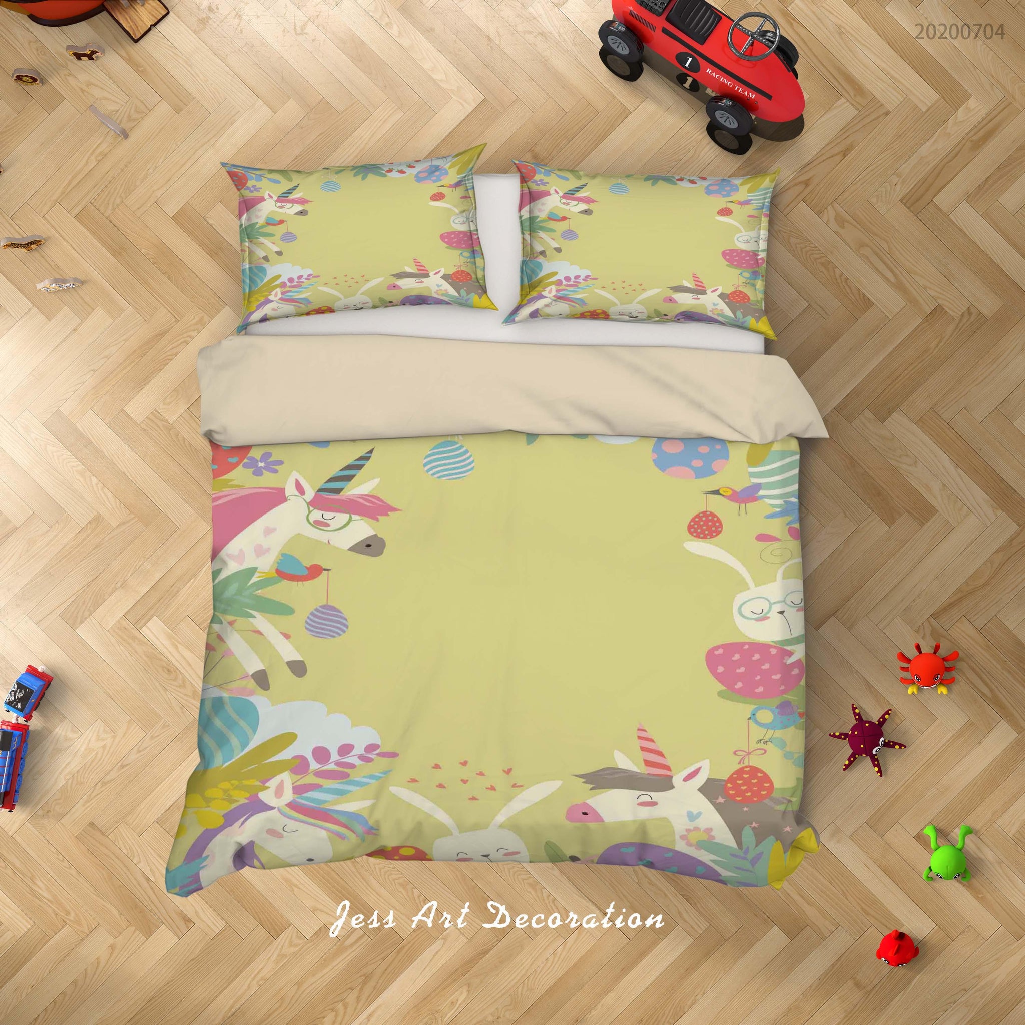 3D Yellow Unicorn Quilt Cover Set Bedding Set Duvet Cover Pillowcases SF216