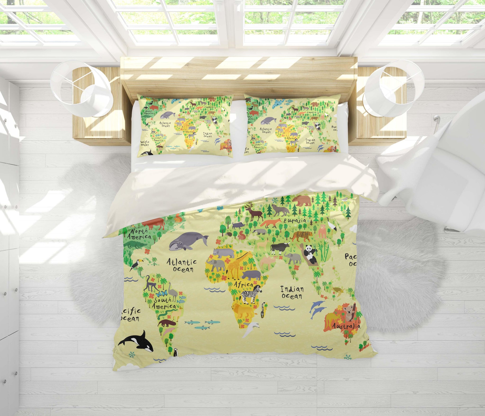 3D Yellow World Map Quilt Cover Set Bedding Set Pillowcases 13