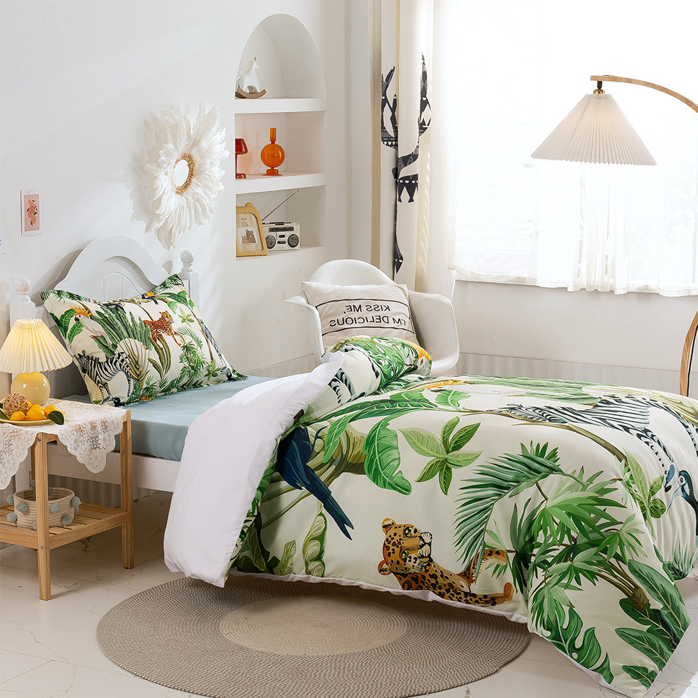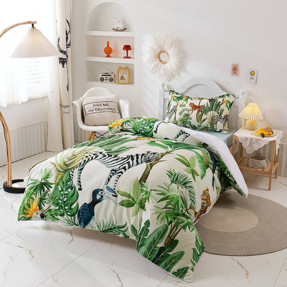 3D Zebra Tiger Toucan Parrot Leaves Quilt Cover Set Bedding Set Duvet Cover Pillowcase 64