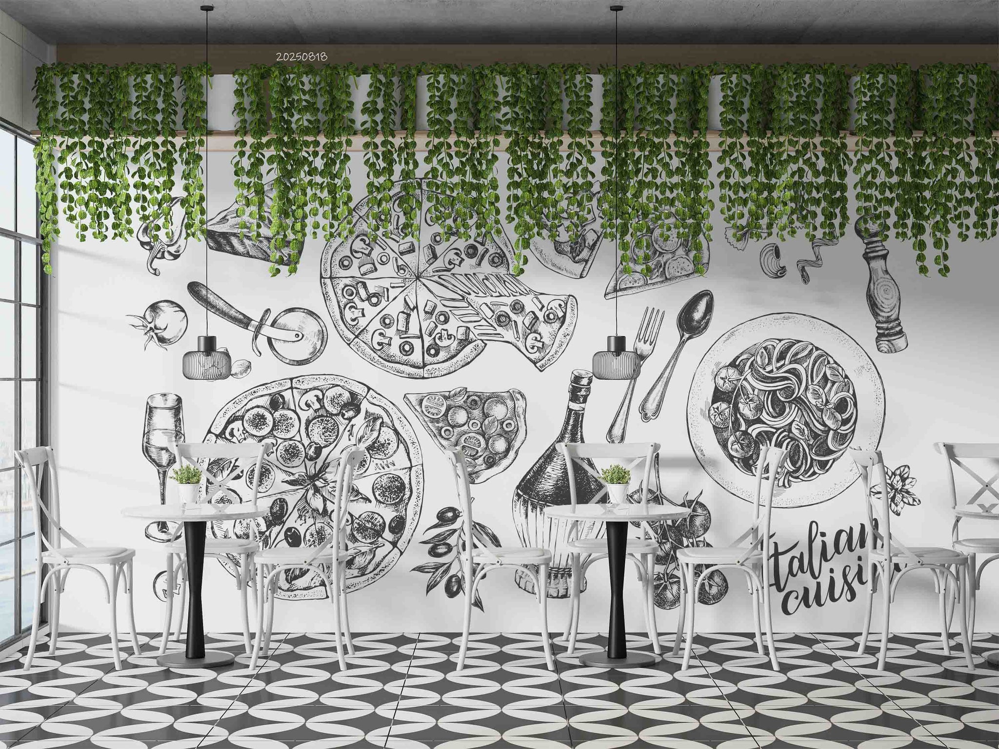 3D Restaurant Snack Bar Diner Fast Food Pizza Wall Mural Wallpaper 38