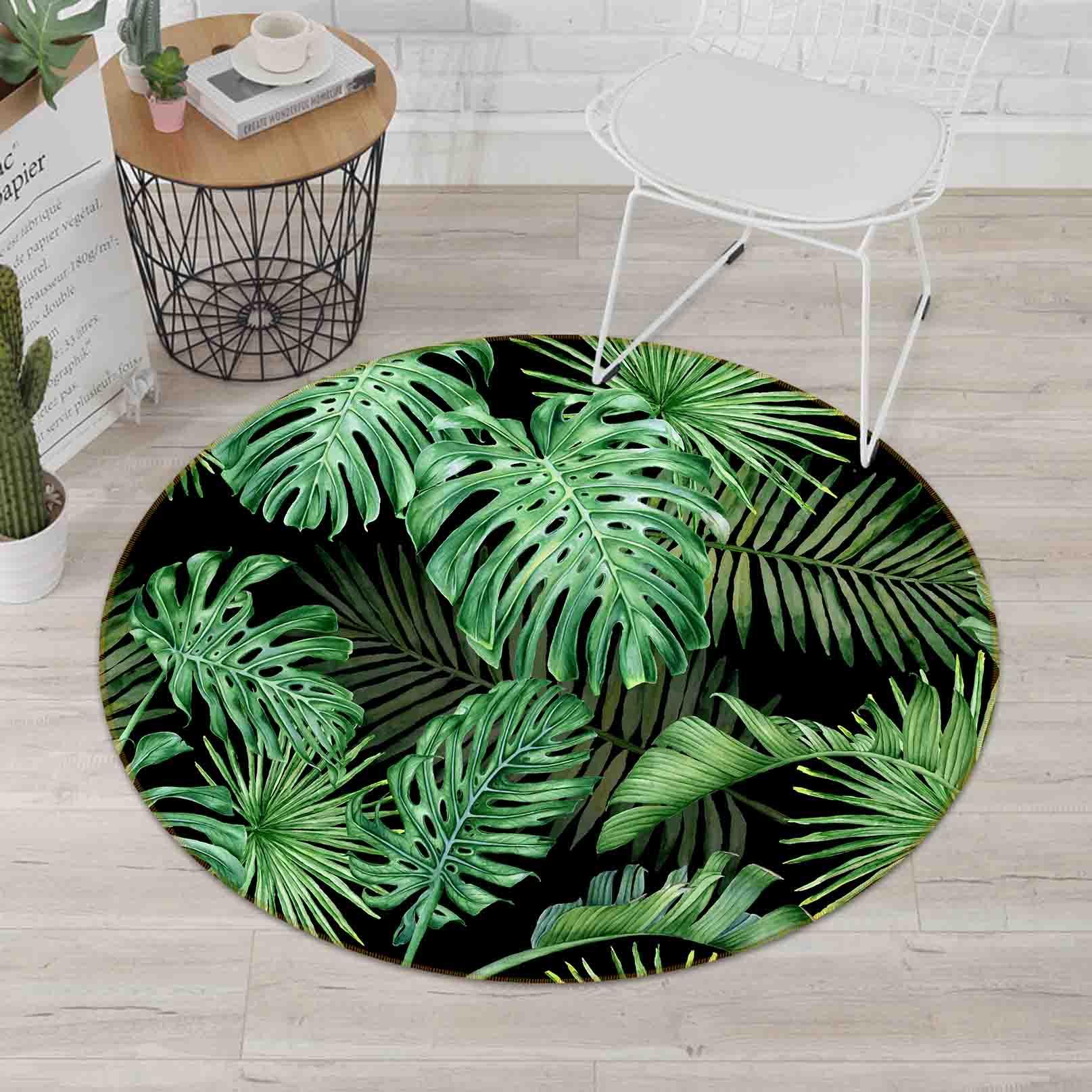 3D Tropical Green Leaf Non-Slip Round Rug Mat 31