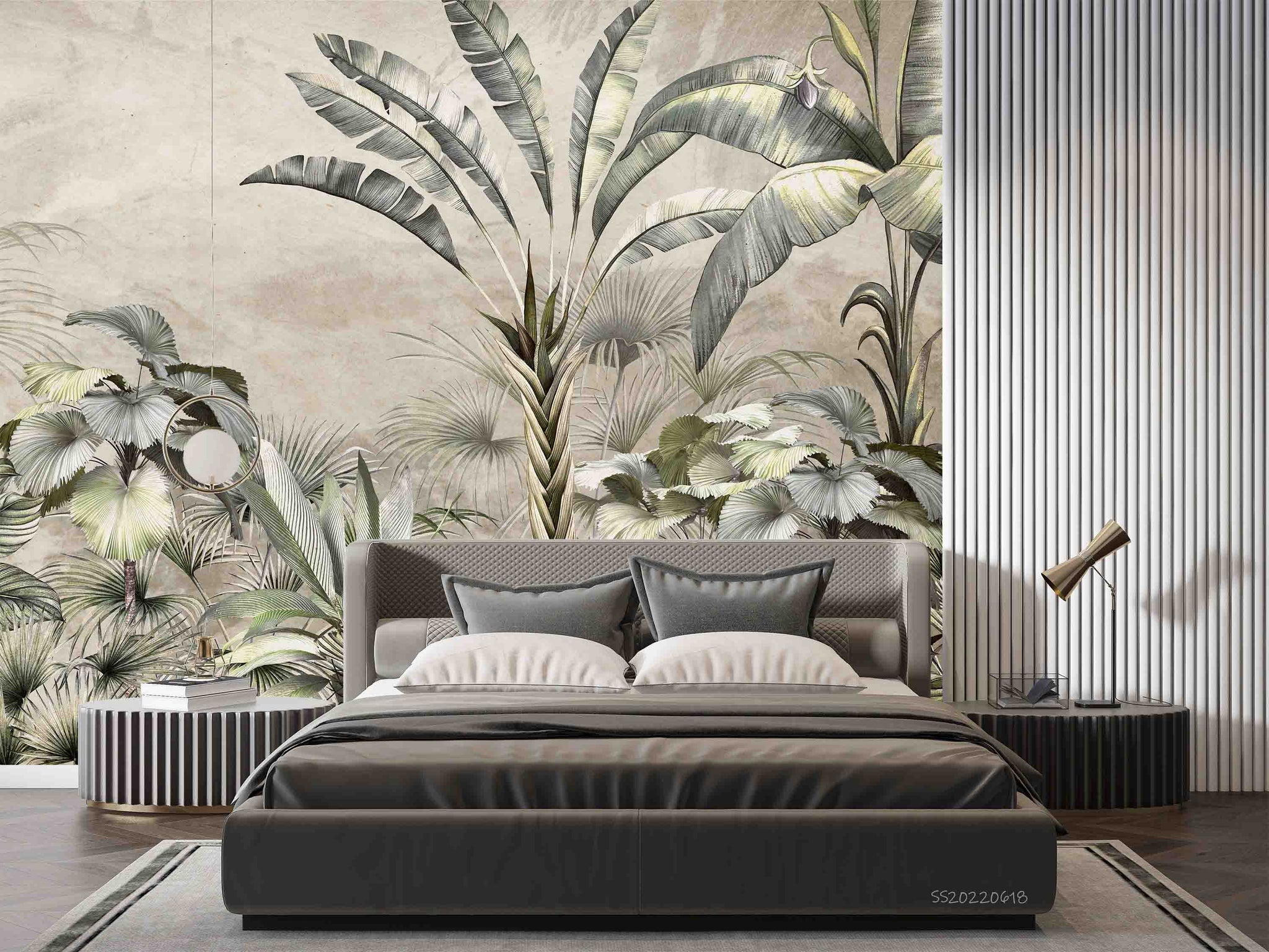 3D Vintage Tropical Plant Leaves Wall Mural Wallpaper GD 760