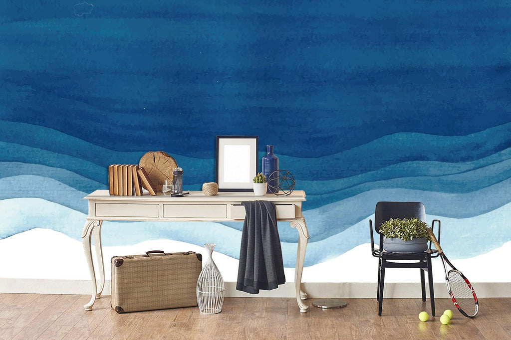 3D Abstract Blue Sea Waves Wall Mural Wallpaper 31