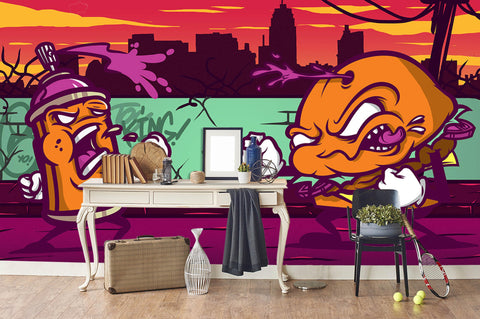 3D Abstract Cartoon Graffiti Wall Mural Wallpaper 297