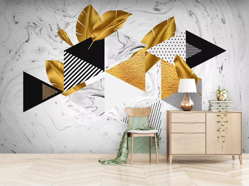 3D Abstract, Feometric figure, Gold foil material Wallpaper