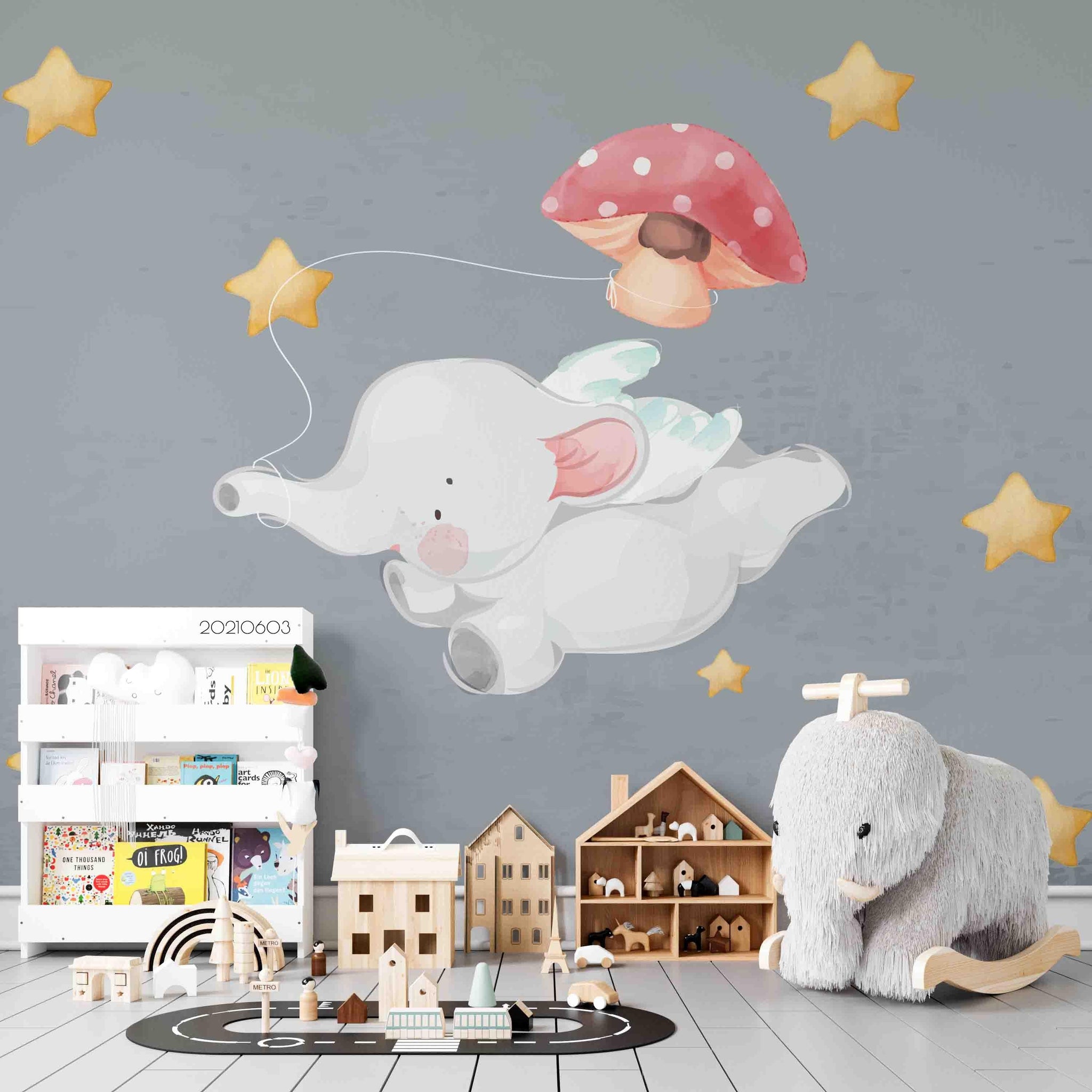 3D Animal Cartoon Cute Watercolor Elephant Wall Mural Wallpaper SWW558
