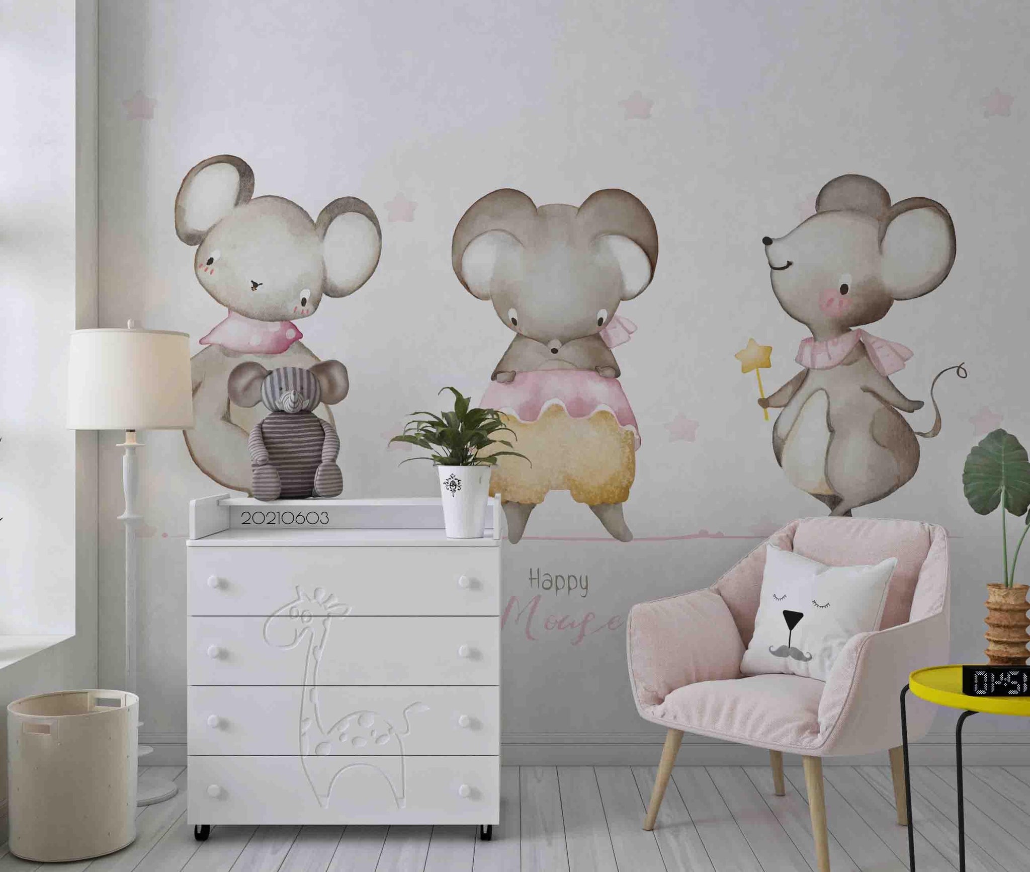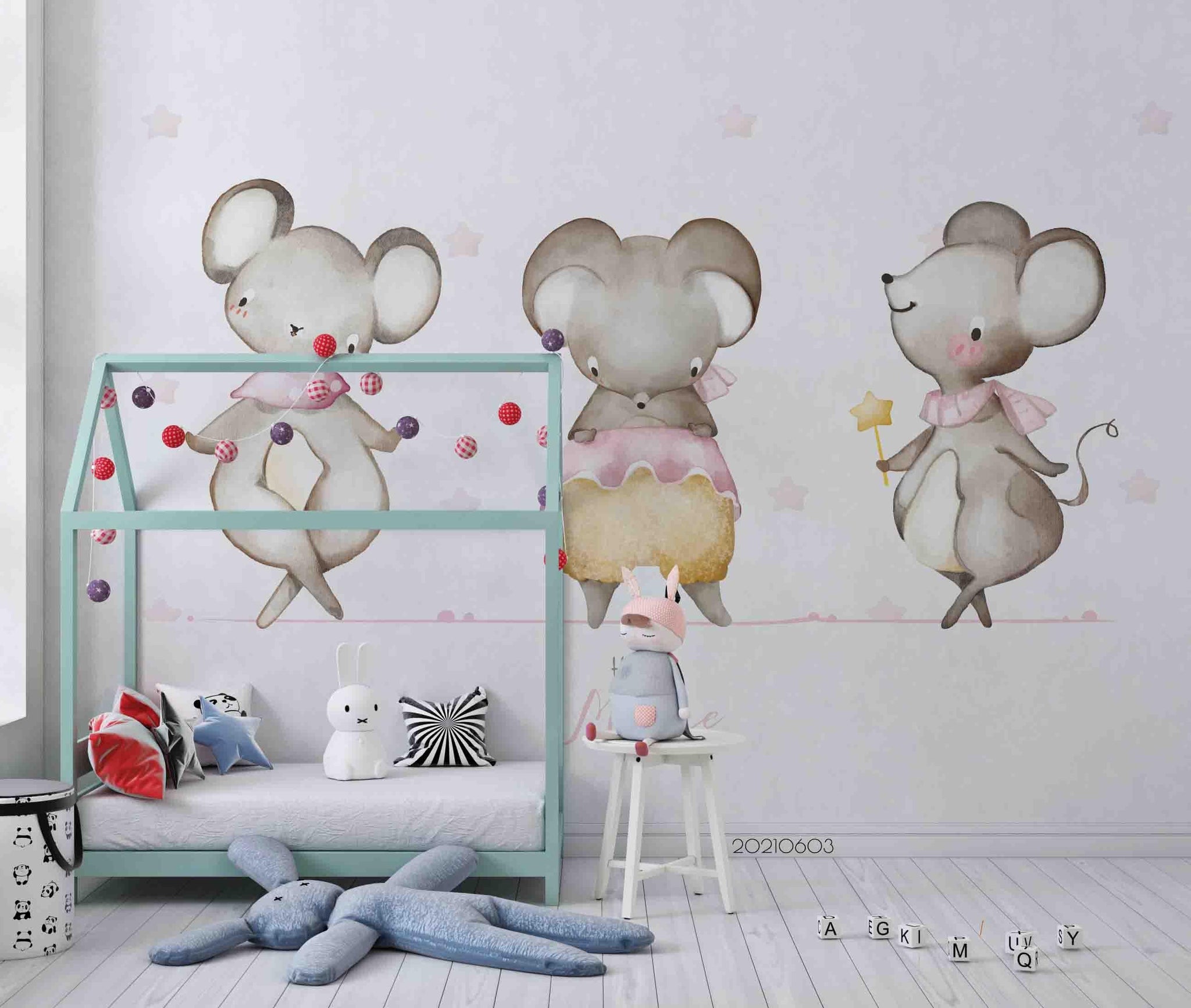 3D Animal Cartoon Cute Watercolor Wall Mural Wallpaper SWW559