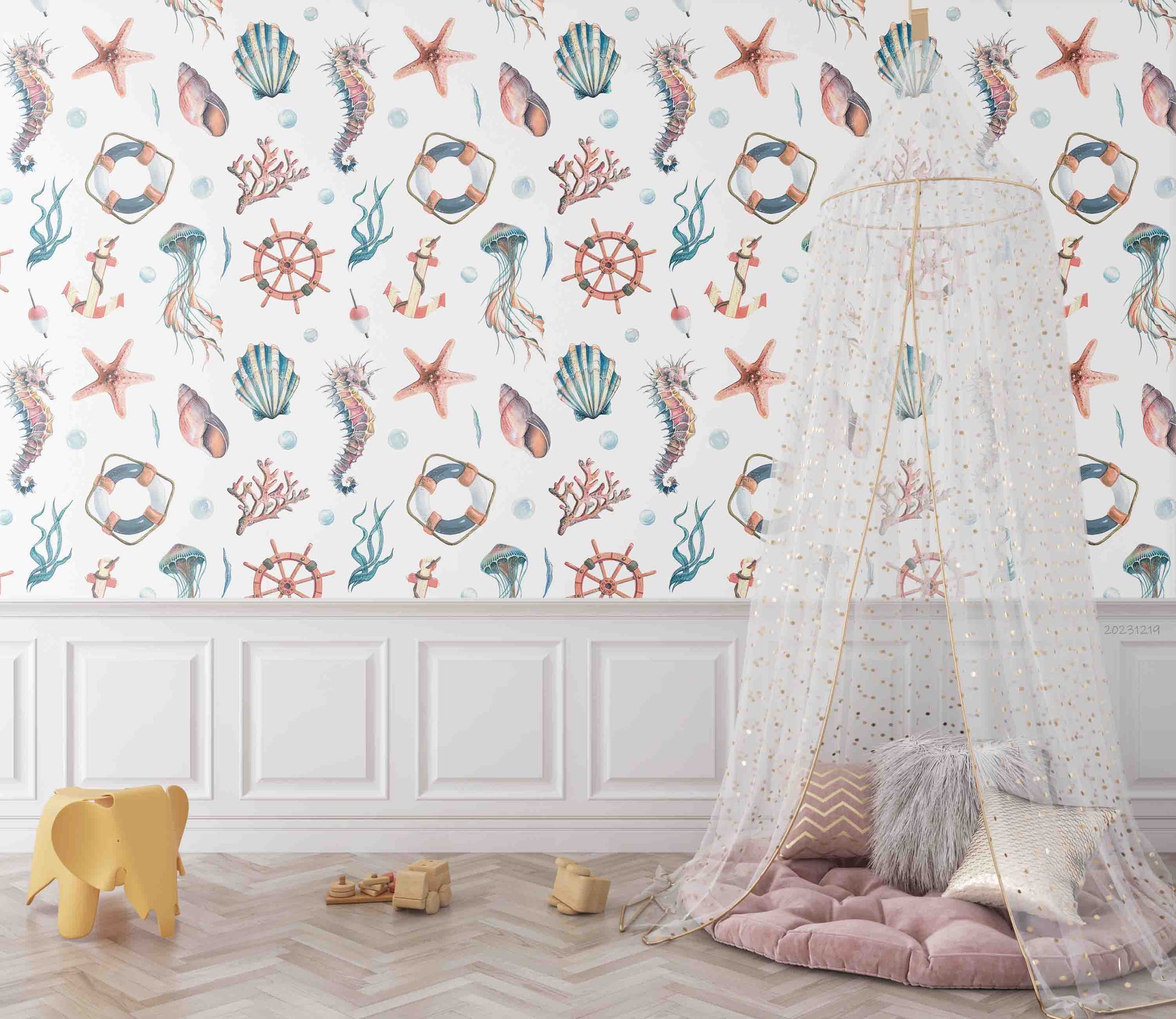 3D Animal Conch Sea Horse Duck Rudder Wave Point Octopus Wall Mural Wallpaper YXL 24