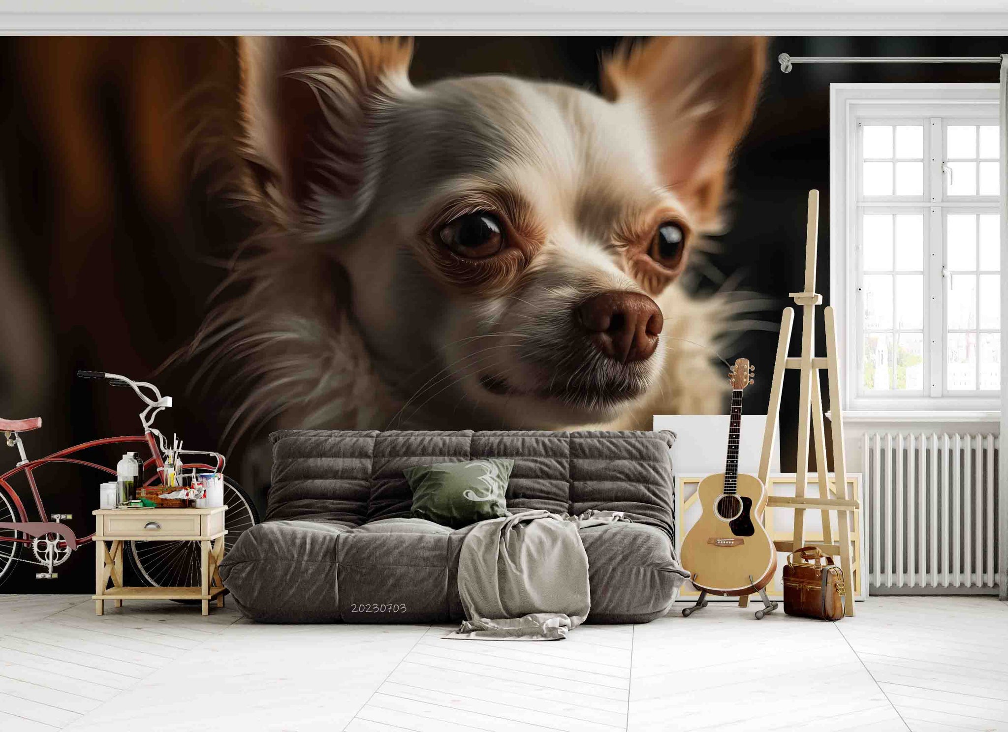 3D Animal Dog White Wall Mural Wallpaper YXL 1824