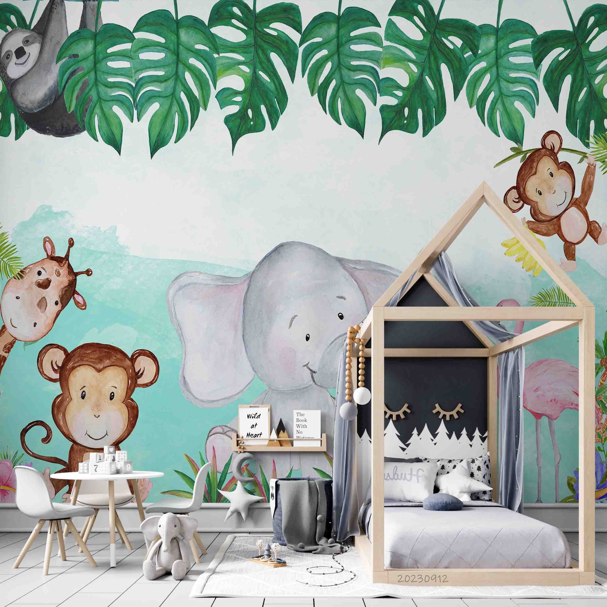 3D Animal Elephant Giraffe Flamingo Monkey Wall Mural Wallpaper YXL 2632