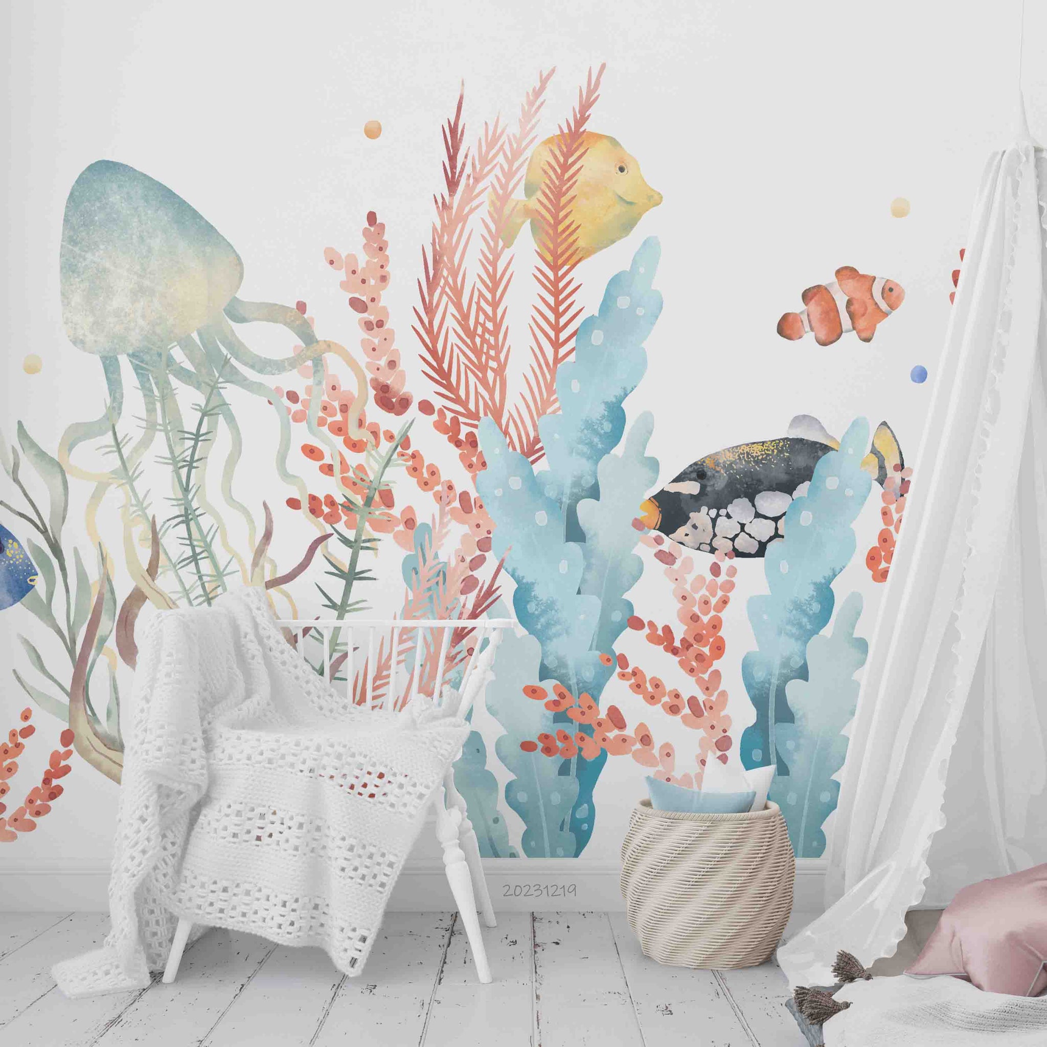 3D Animal Fish Coral Octopus Dot Wall Mural Wallpaper YXL 57