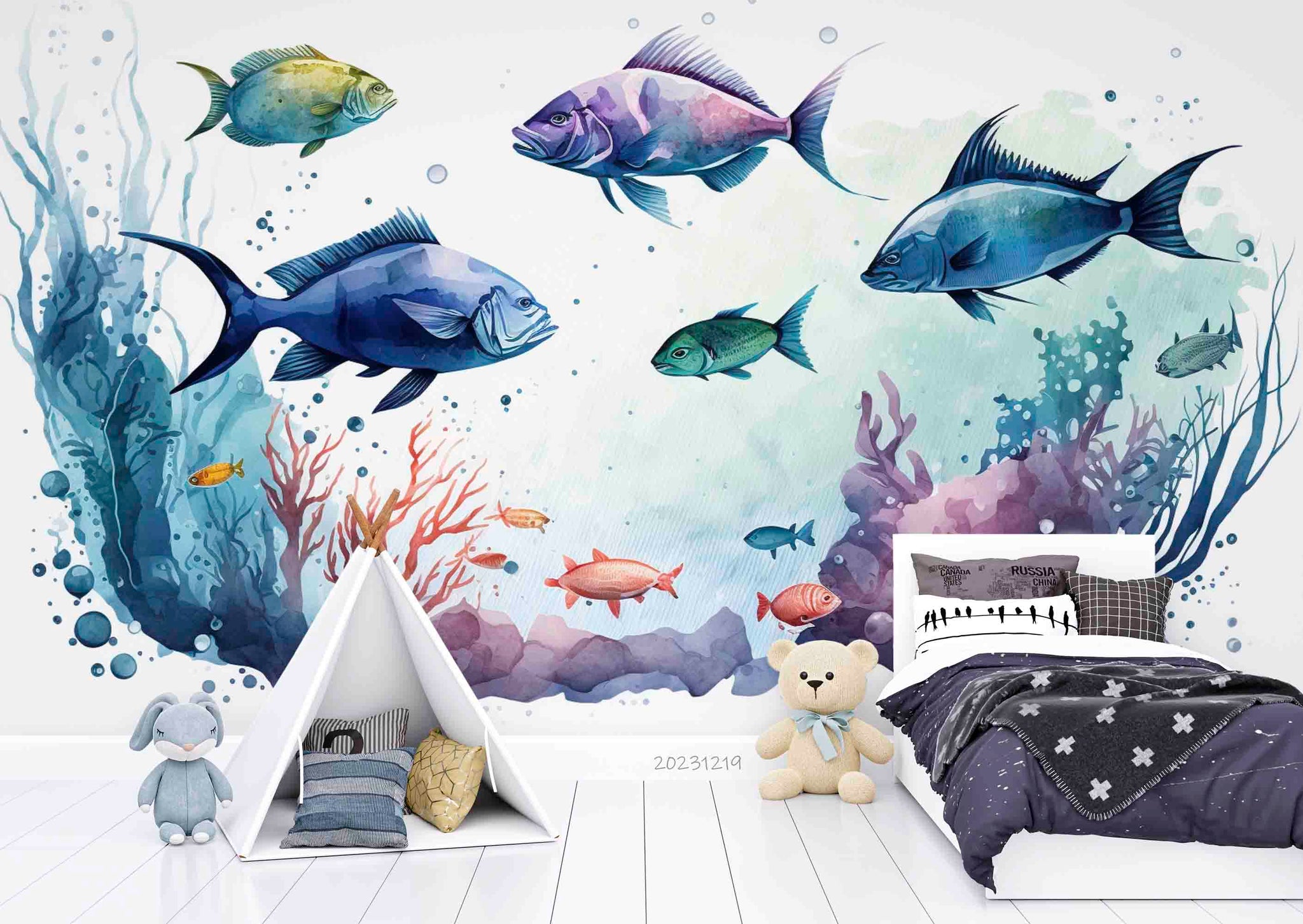 3D Animal Fish Coral Sea Bubble Wall Mural Wallpaper YXL 08