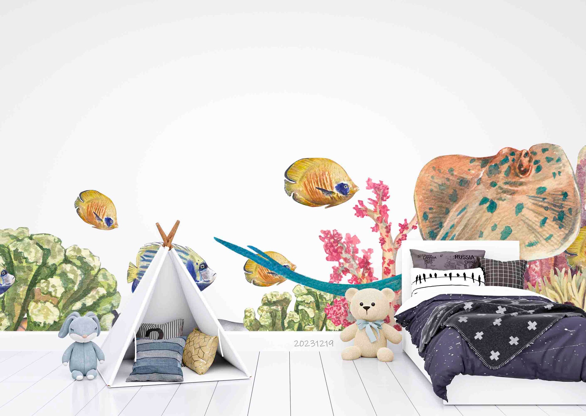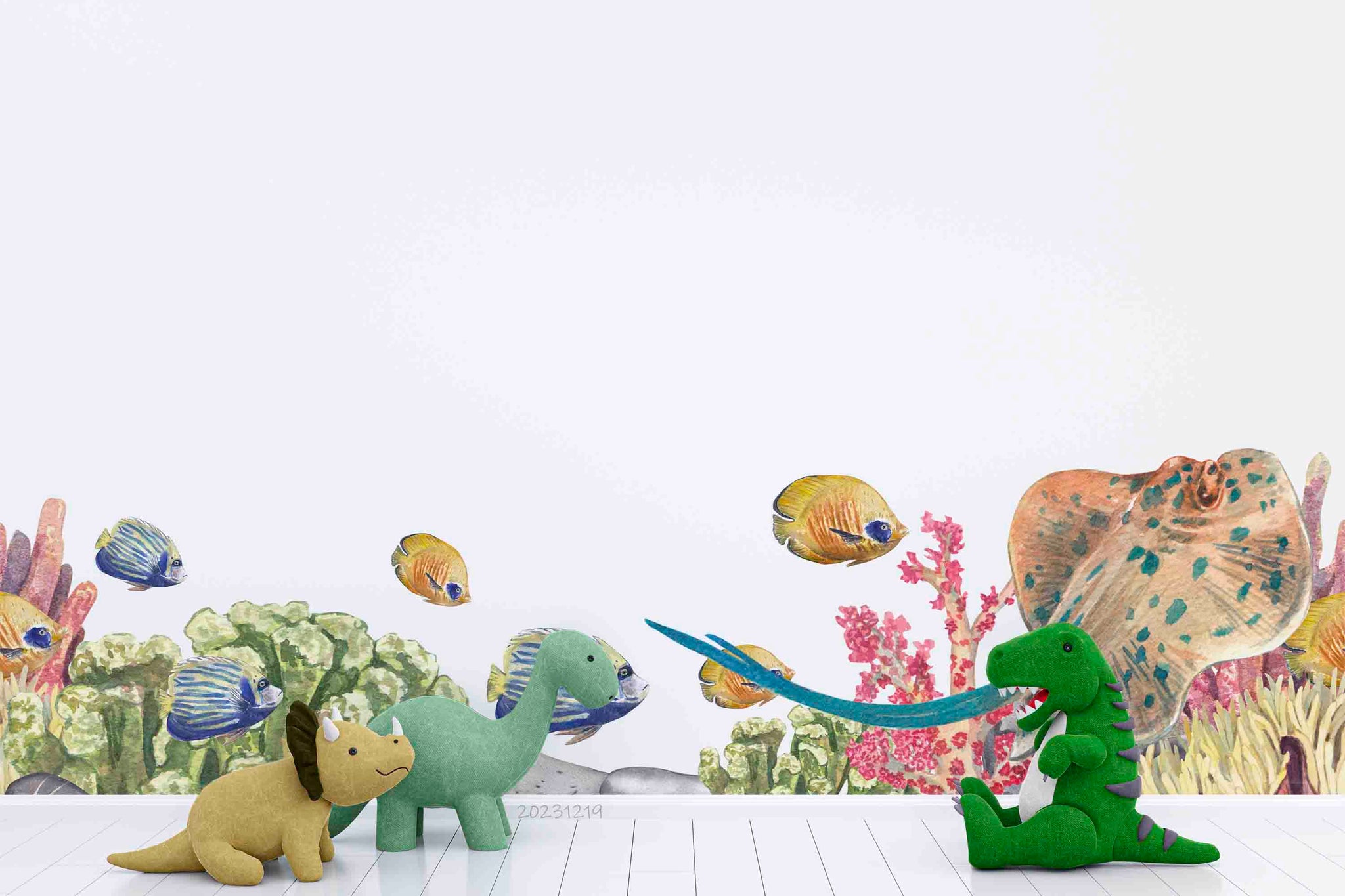 3D Animal Fish Coral Sea Stone Wall Mural Wallpaper YXL 03