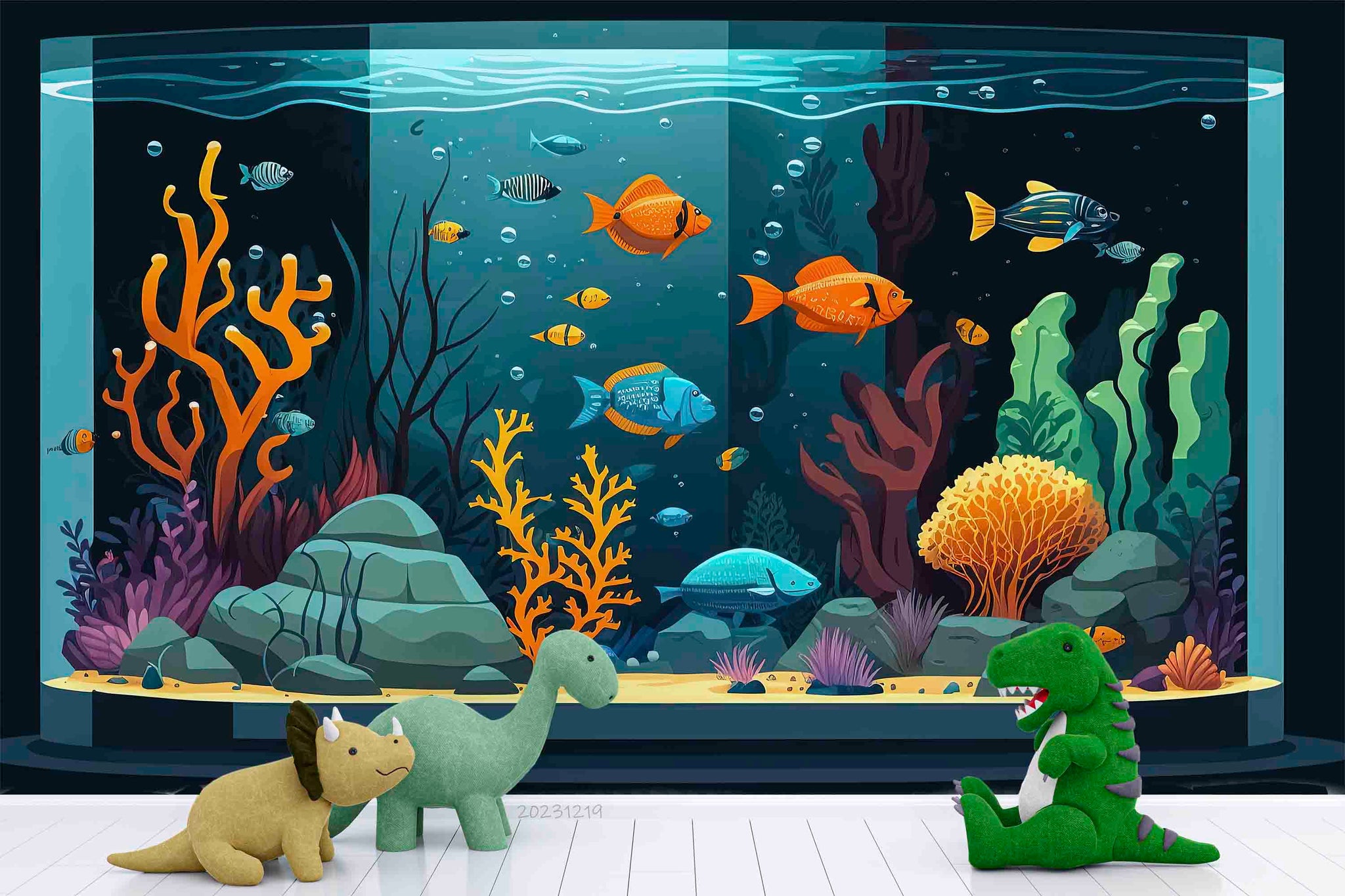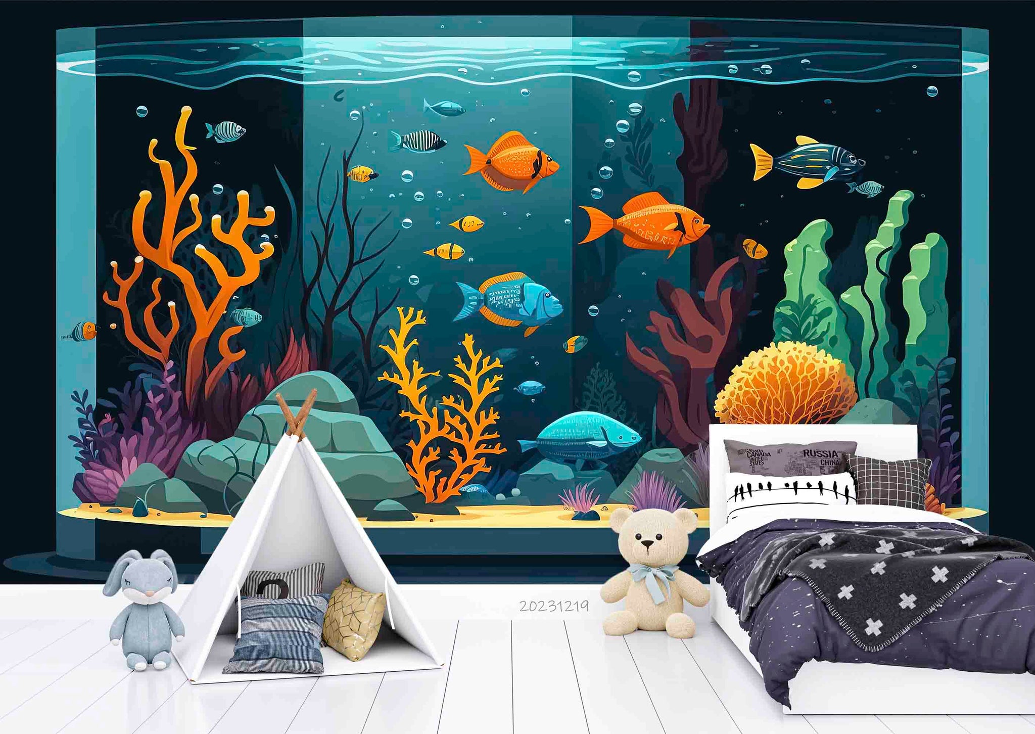 3D Animal Fish Tank Fish Coral Bubble Stone Wall Mural Wallpaper YXL 17