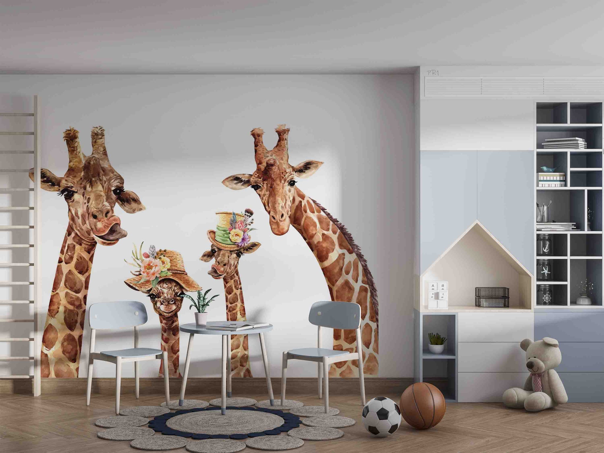3D Animal Giraffe Cap Floral Wall Mural Wallpaper YXL 2682