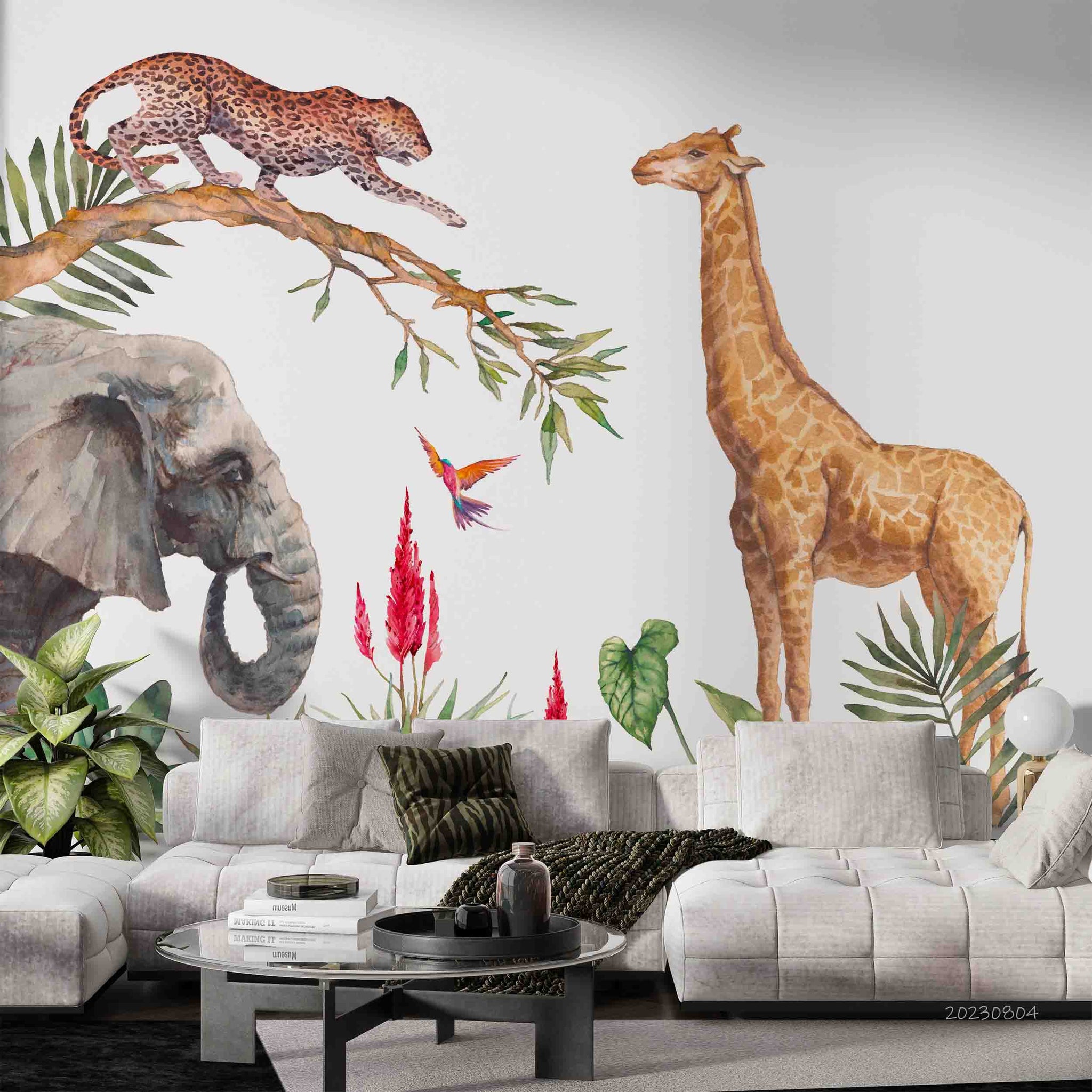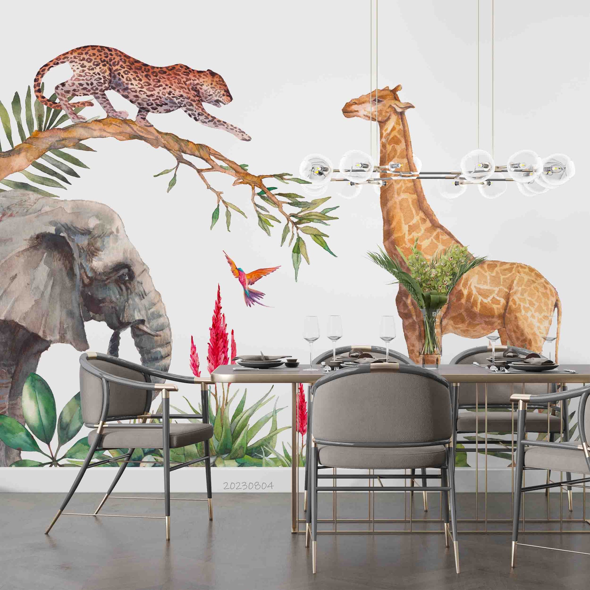 3D Animal Giraffe Cheetah Elephant Tree Wall Mural Wallpaper YXL 2531