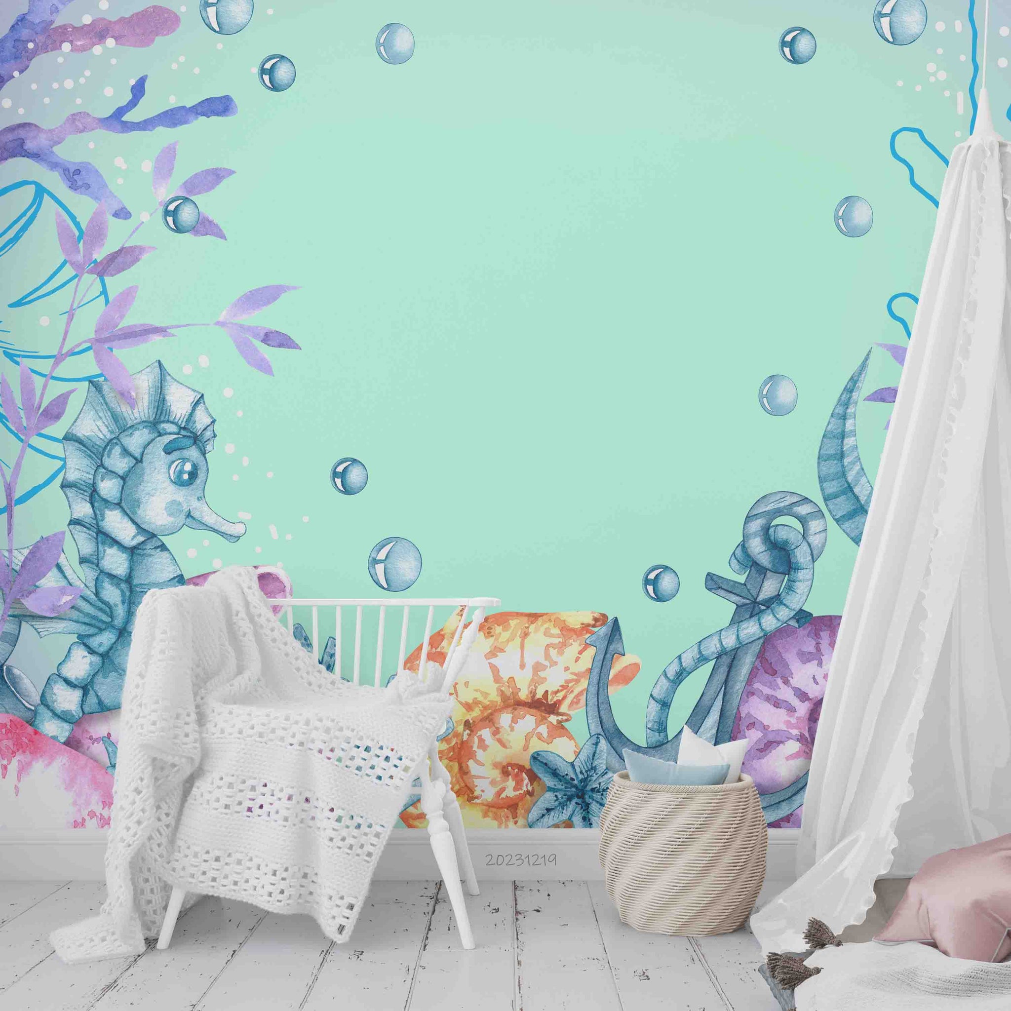 3D Animal Sea Sea Horse Conch Starfish Bubble Wall Mural Wallpaper YXL 55