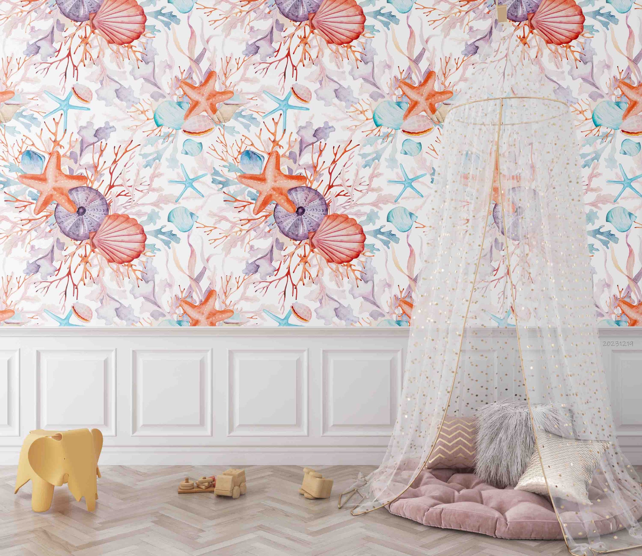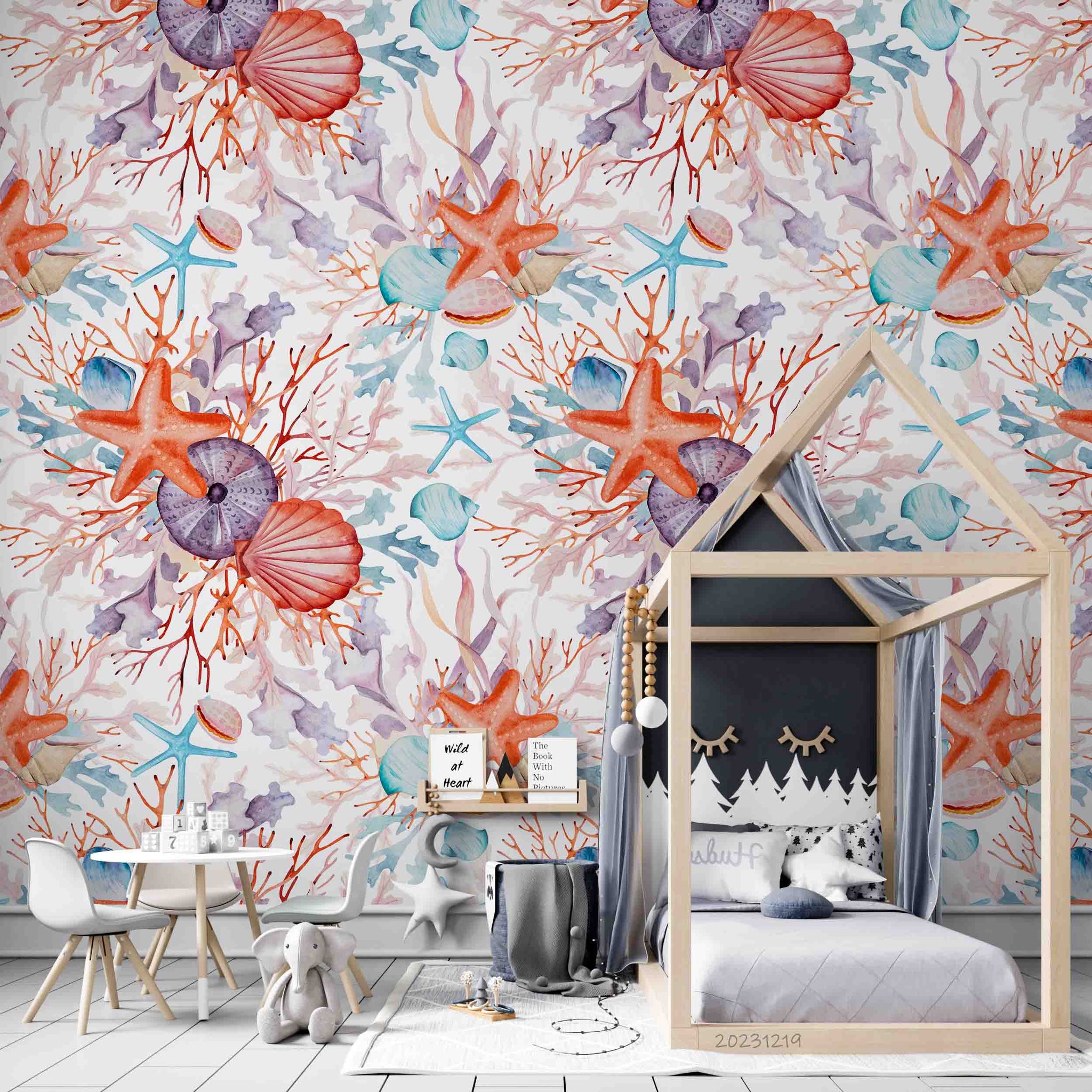 3D Animal Starfish Conch Coral Fish Sea Wall Mural Wallpaper YXL 61