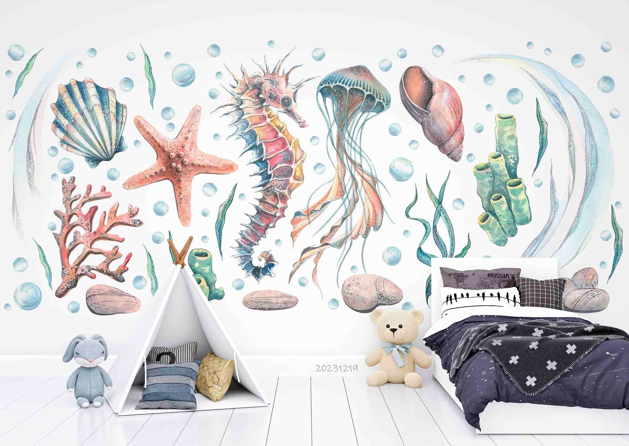 3D Animal Starfish Coral Sea Horse Octopus Shell Wall Mural Wallpaper YXL 18