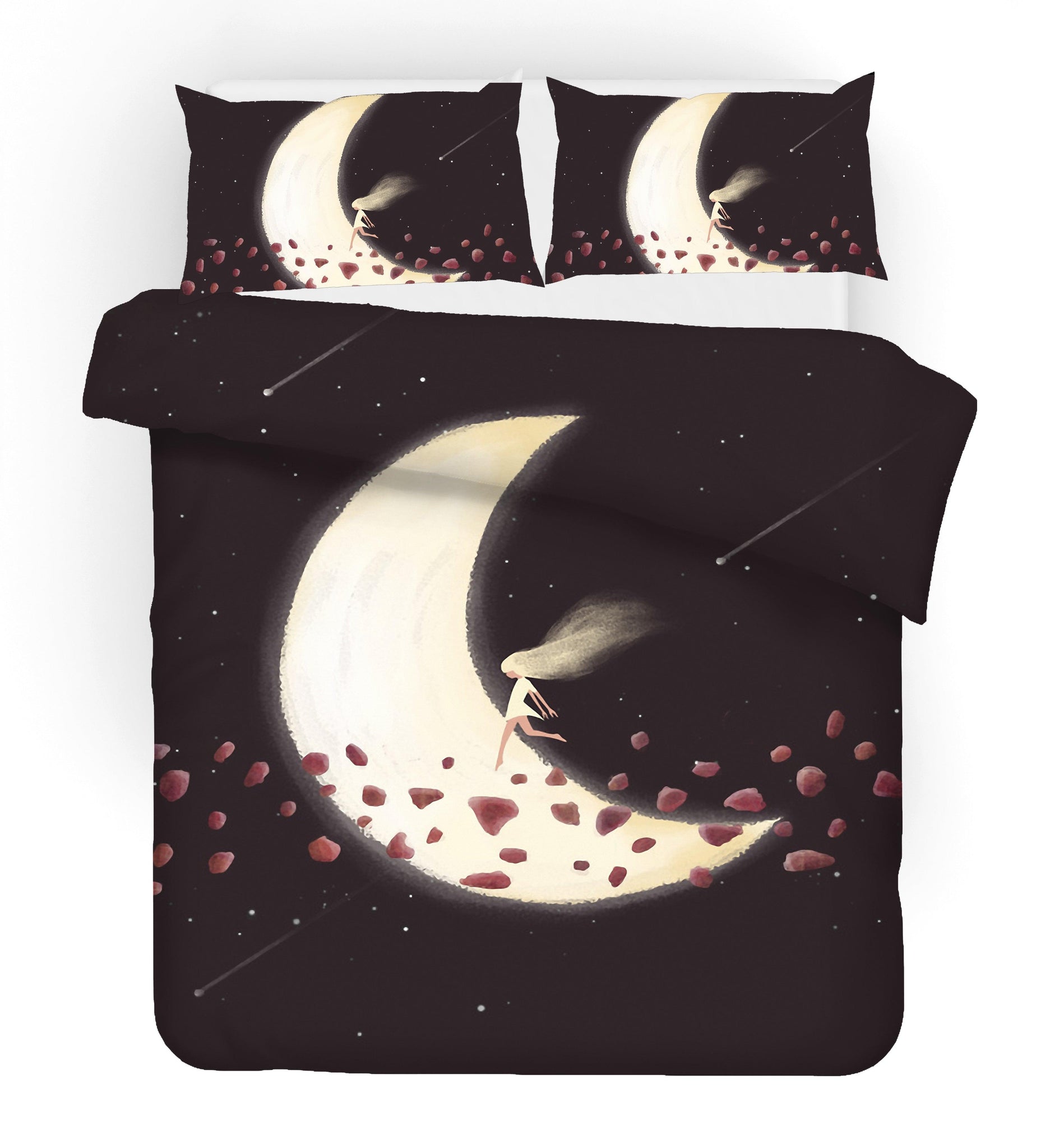 3D Dark Brown Diamond Moon Girl Quilt Cover Set Bedding Set Pillowcases 129
