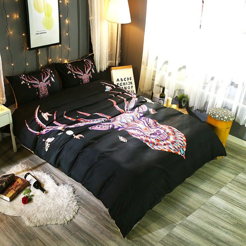 3D Black National Elk Wapiti Bedding Set Quilt Cover Quilt Duvet Cover ,Pillowcases Personalized Bedding,Queen, King ,Full, Double 3 Pcs
