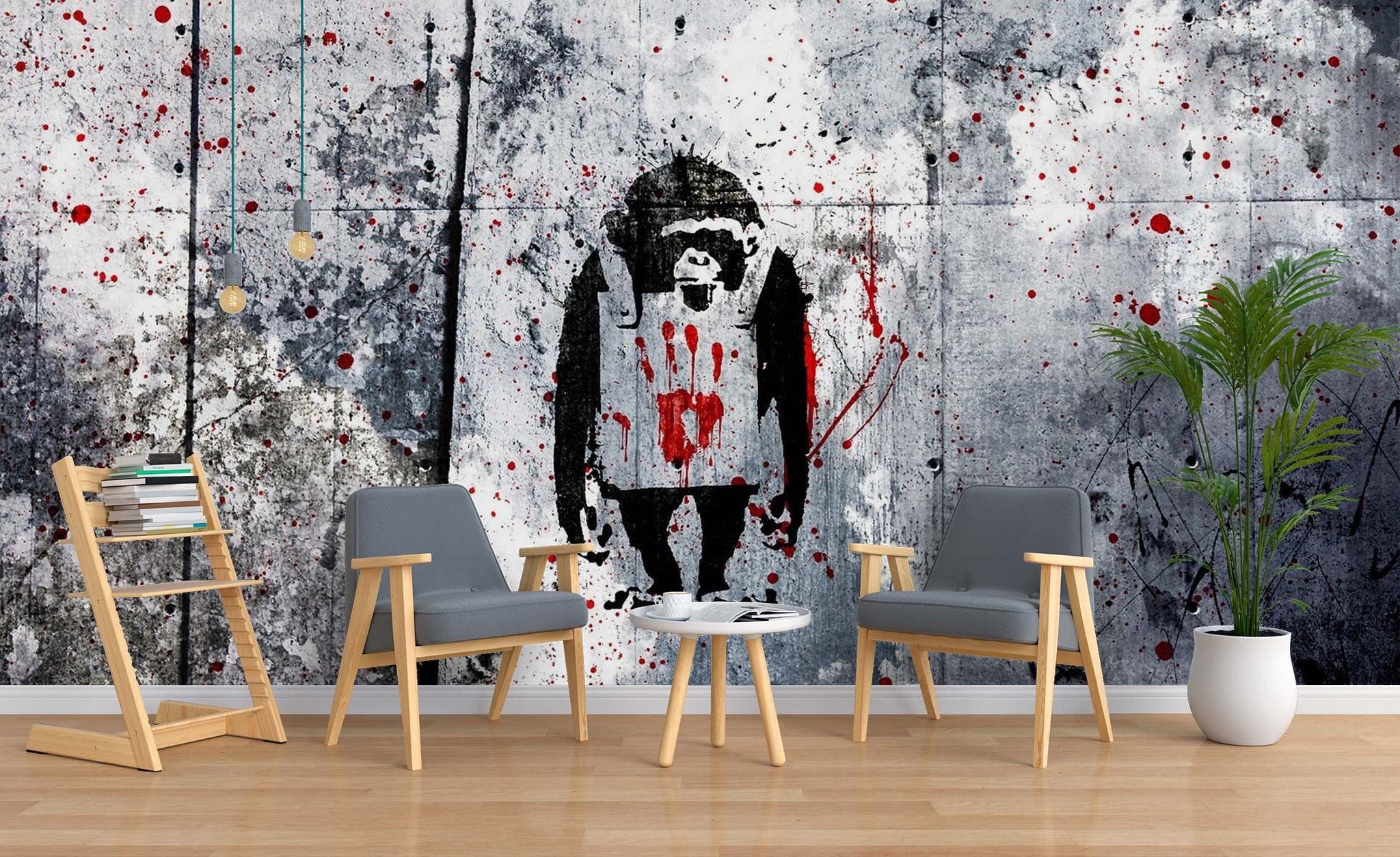 3D Black White Gorilla Banksy Murder Scene Red Blood Wall Mural Wallpaper ZY D122