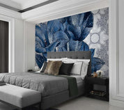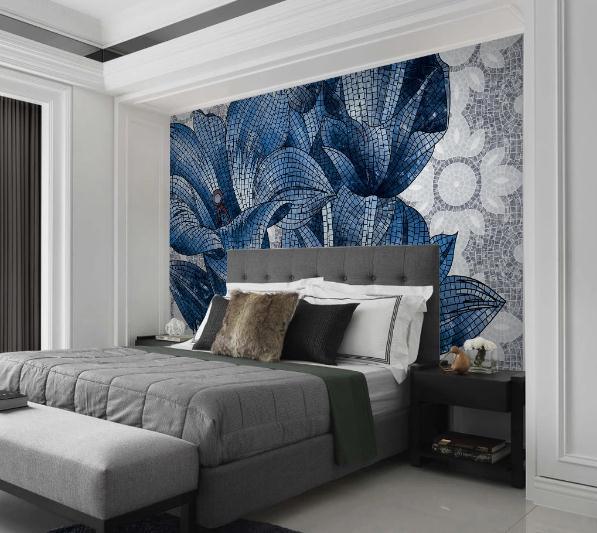 3D Blue Mosaic Floral Wall Mural Wallpaper 337