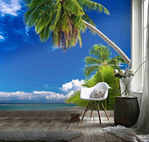 3D Blue Sky Tropical Plants Wall Mural Wallpaper 41