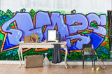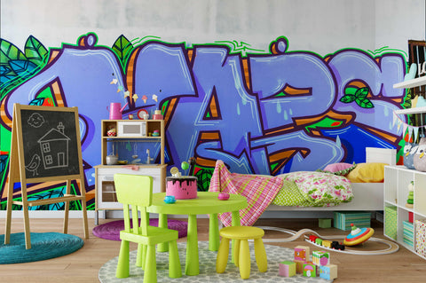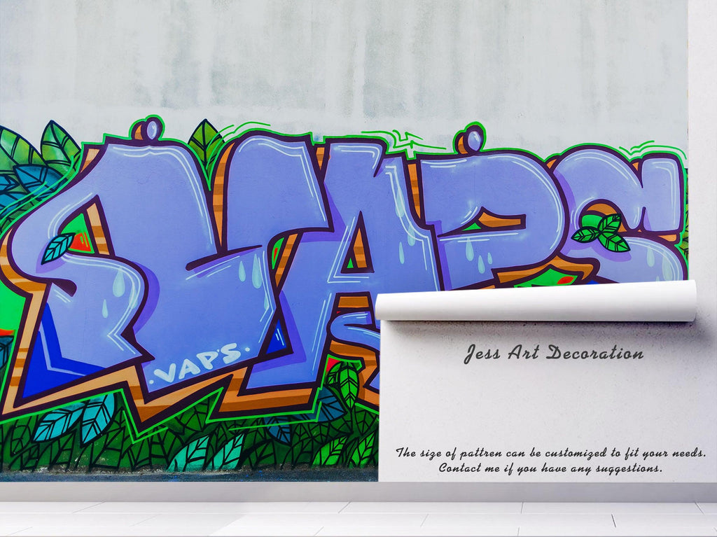 3D Blue Slogan Green Leaves Graffiti Wall Mural Wallpaper 232