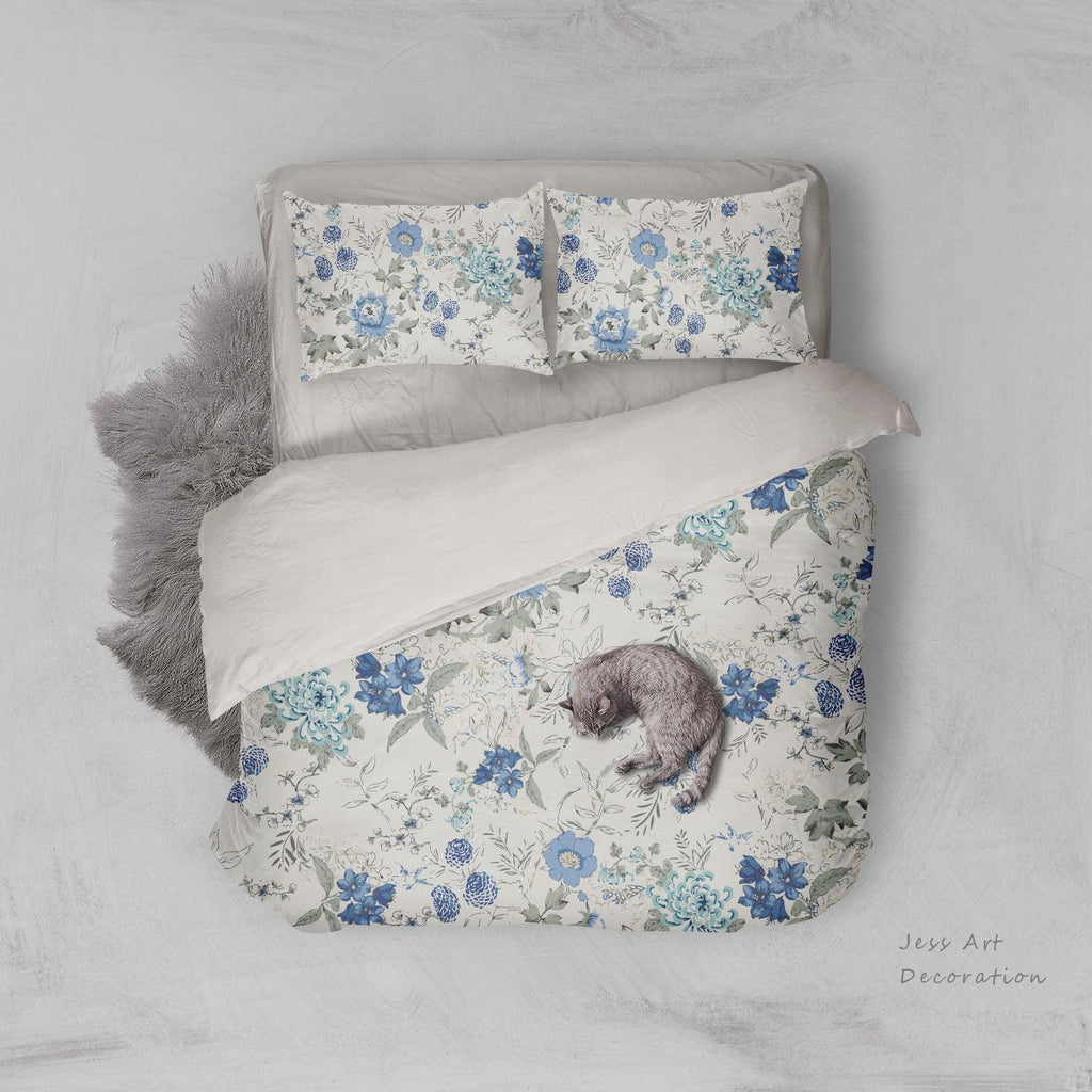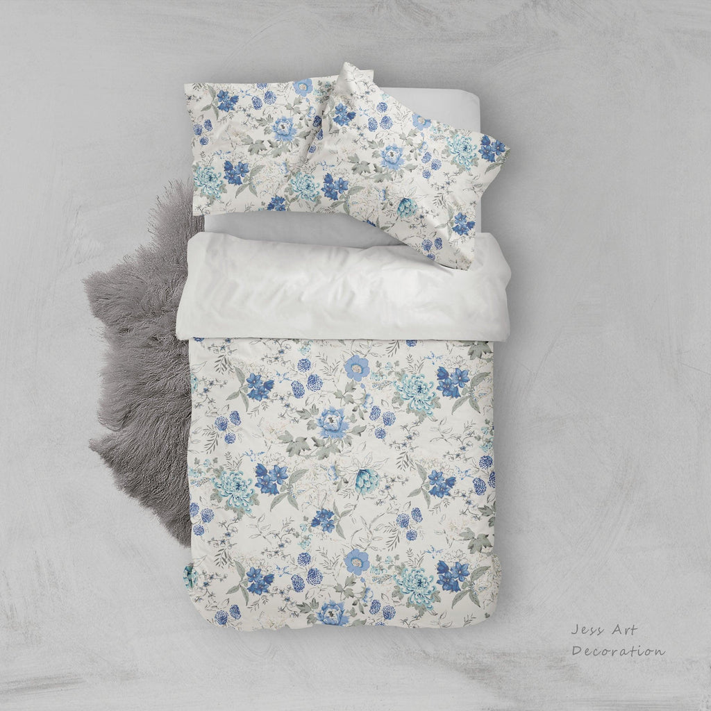 3D Blue-tones, Floral Set Quilt Cover Quilt Duvet Cover ,Pillowcases Personalized Bedding,Queen, King ,Full, Double 3 Pcs