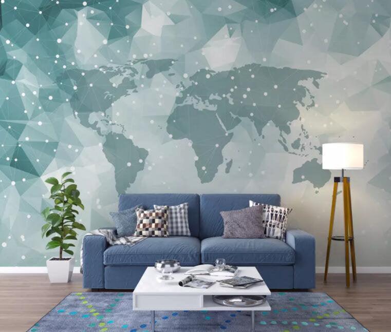 3D Blue-tones, Gradient, Geometry, World map Wallpaper