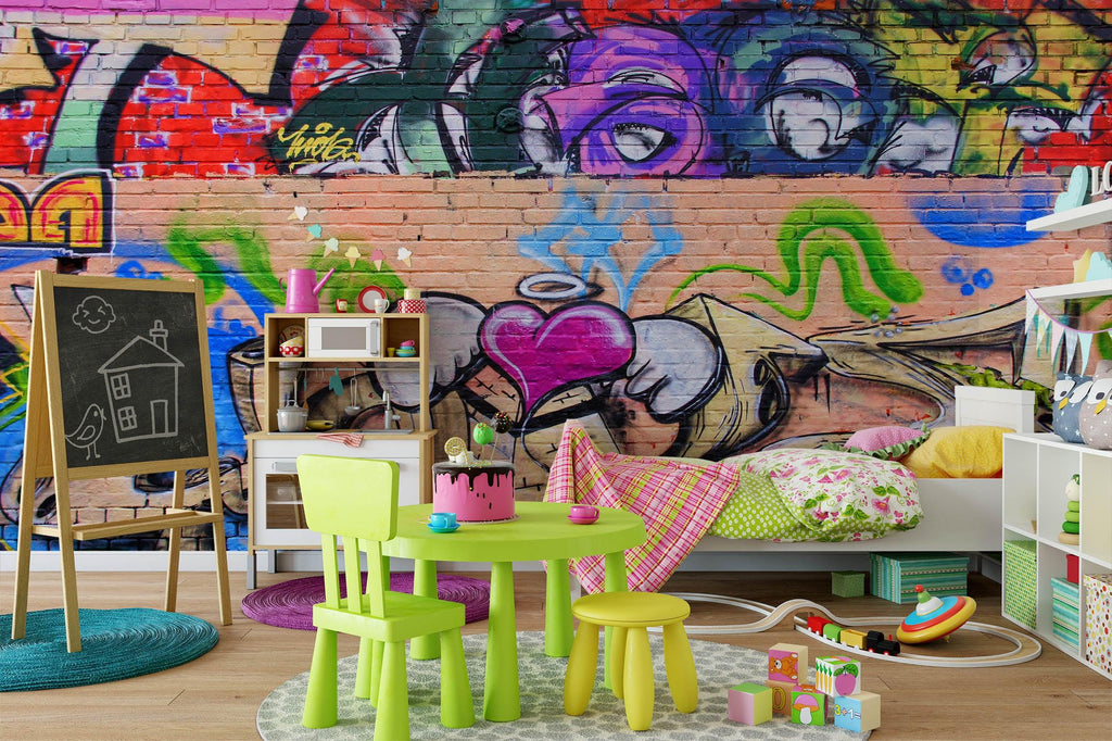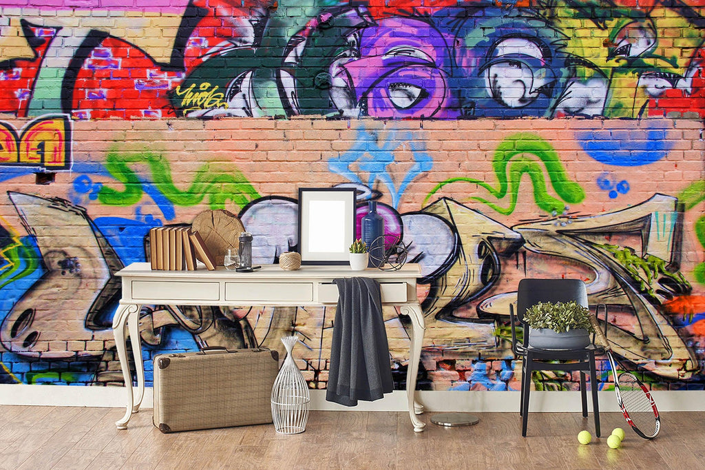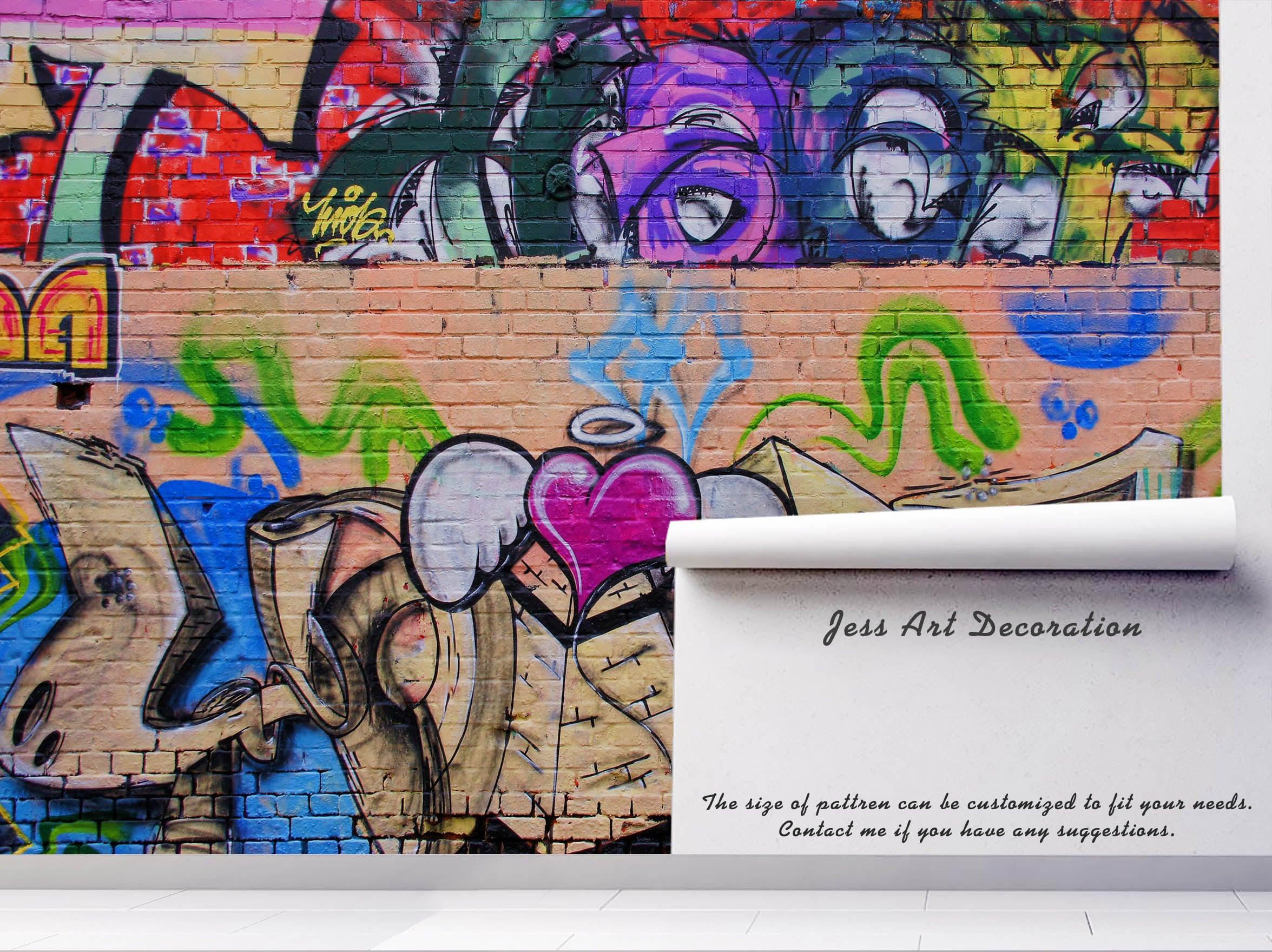 3D Brick Abstract Colorful Graffiti Wall Mural Wallpaper 154