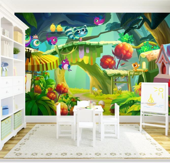 3D Cartoon Green Forest Wall Mural Wallpaper 185